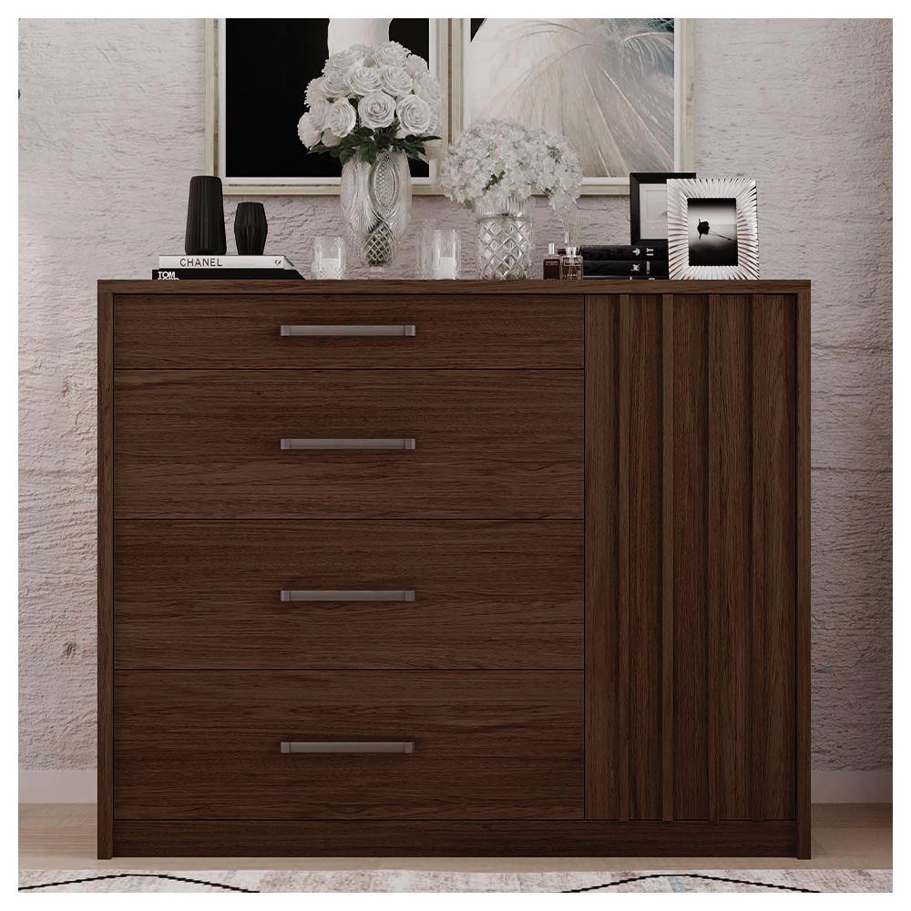 Cômoda Sapateira 1 Porta 4 Gavetas Marrom Palacius Caemmun