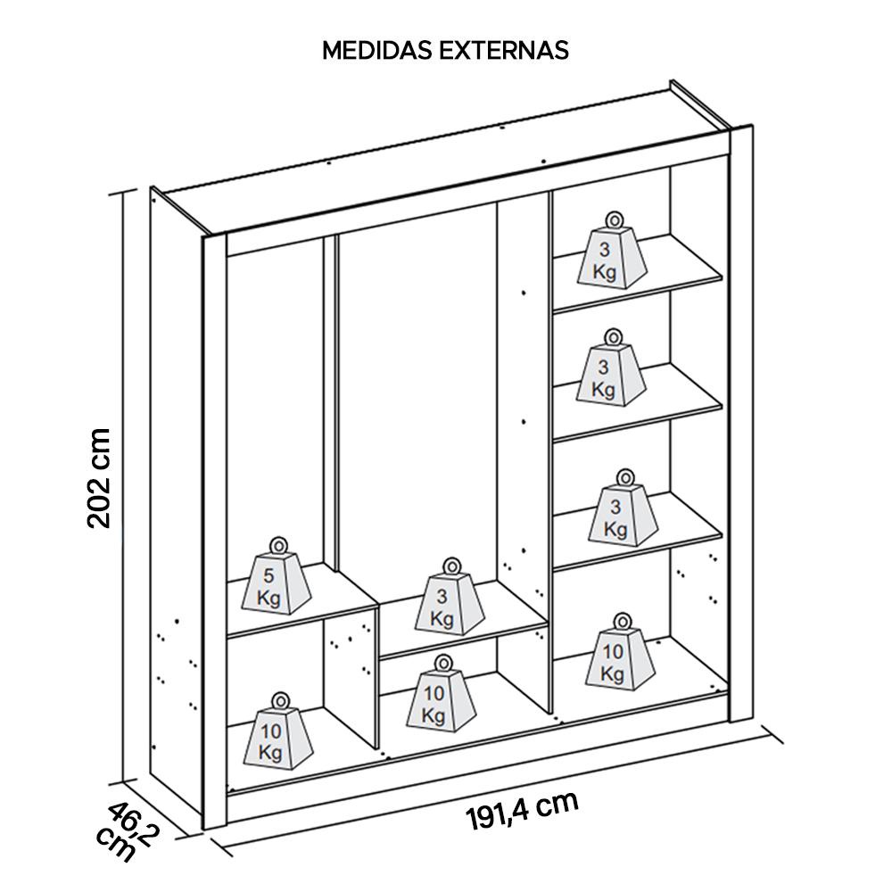 Guarda Roupa Casal Grande 3 Portas De Correr Marrom Glass
