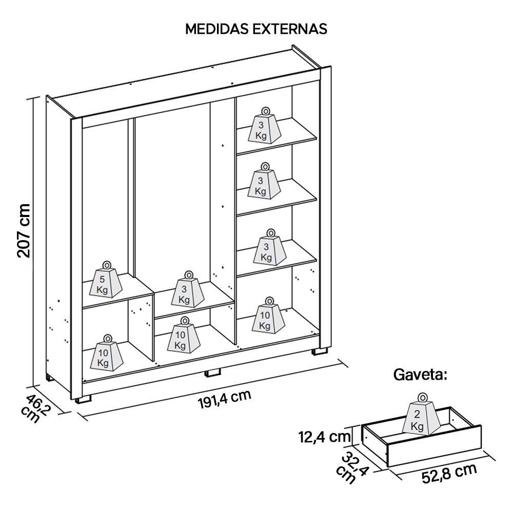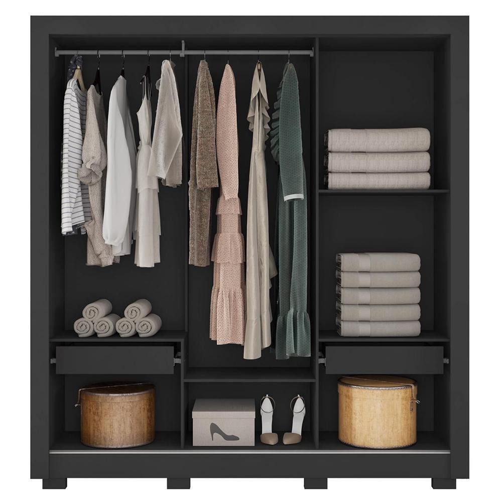Guarda Roupa Com 3 Portas 2 Gavetas 8 Pés Preto Armo
