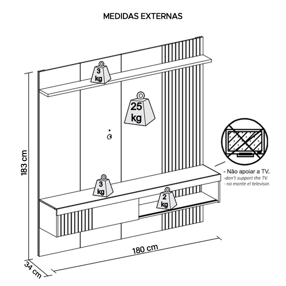 Painel Para Tv Até 65 Polegadas Marrom Moon Caemmun