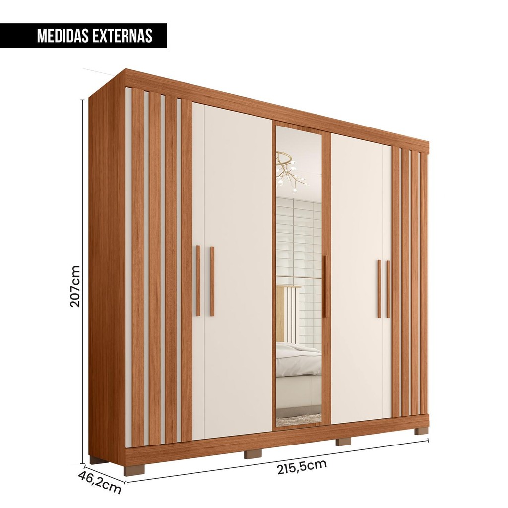 Guarda Roupa Casal 5 Portas Com Espelho Marta Marrom Caemmun