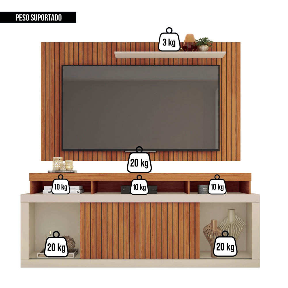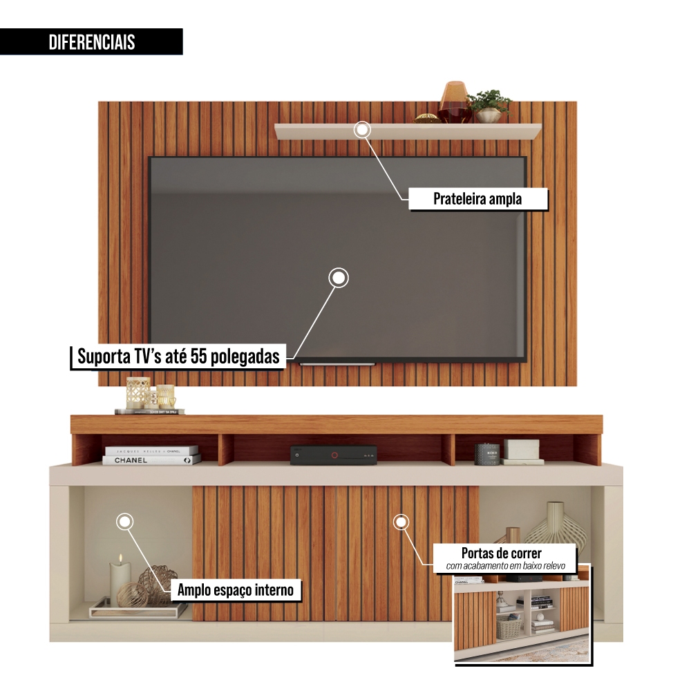 Rack Painel Para TV até 65 Polegadas Marrom Life Caemmun