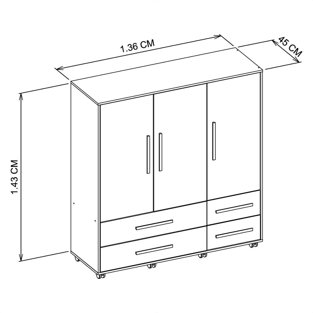 Cômoda 3 Portas 4 Gavetas Seth Branca Caemmun