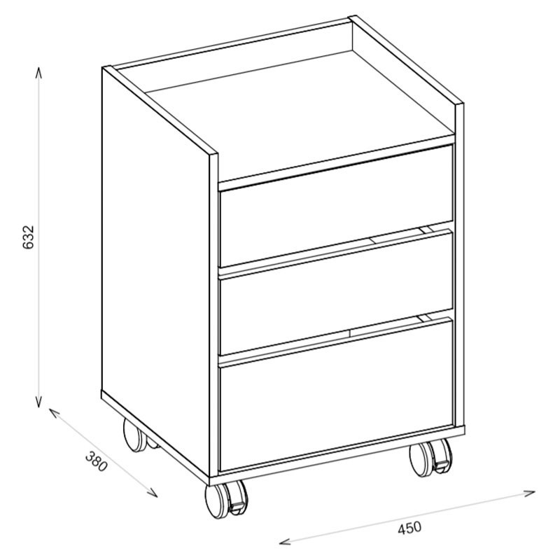 Gaveteiro Escritorio Organizador Studio 3 Gavetas Caemmun