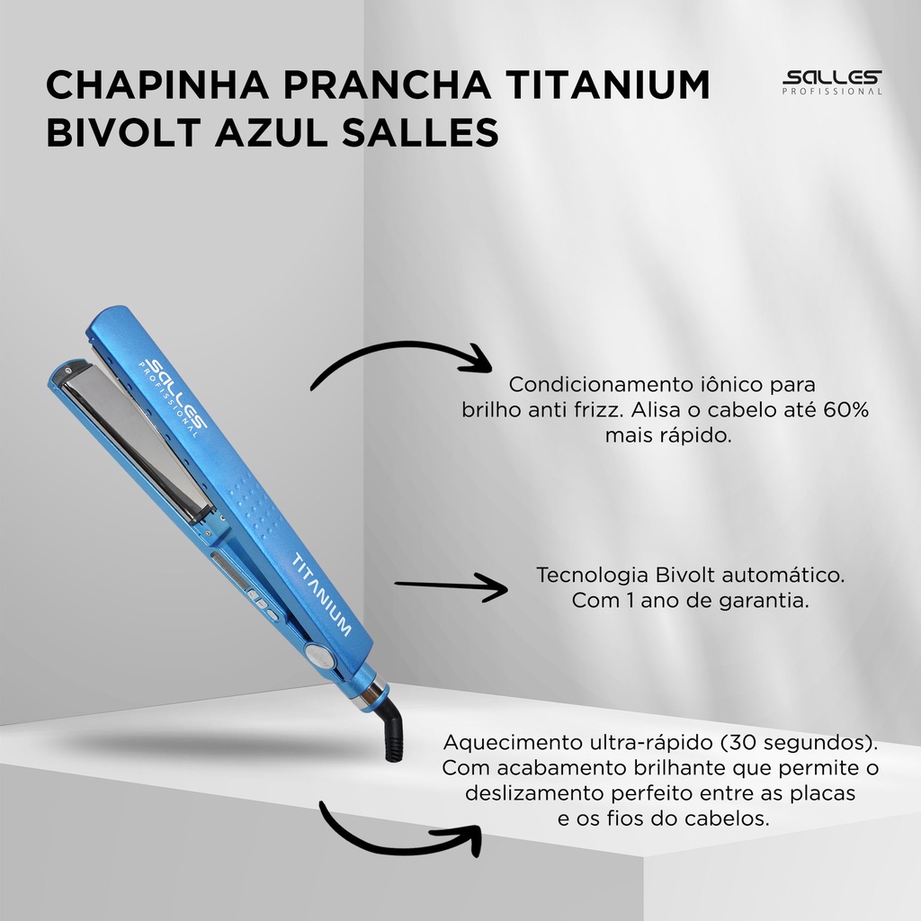 Chapinha Prancha Titanium Bivolt Azul Salles Pro
