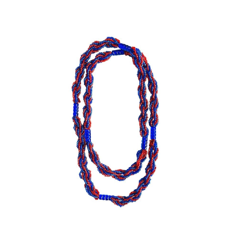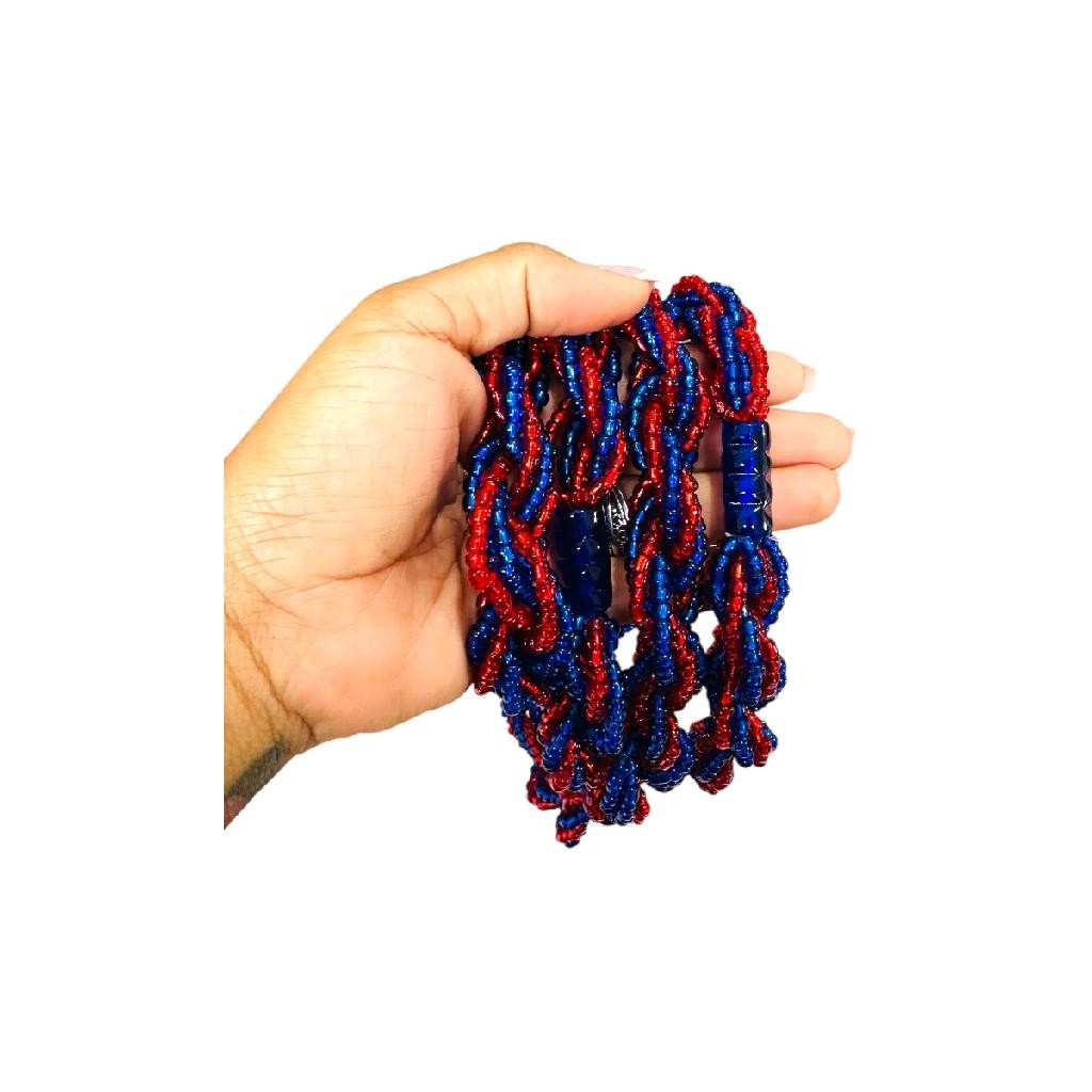 Braja 8 fios Trançados Azul e Vermelho Cristalizado Ogum 70cm de Comprimento