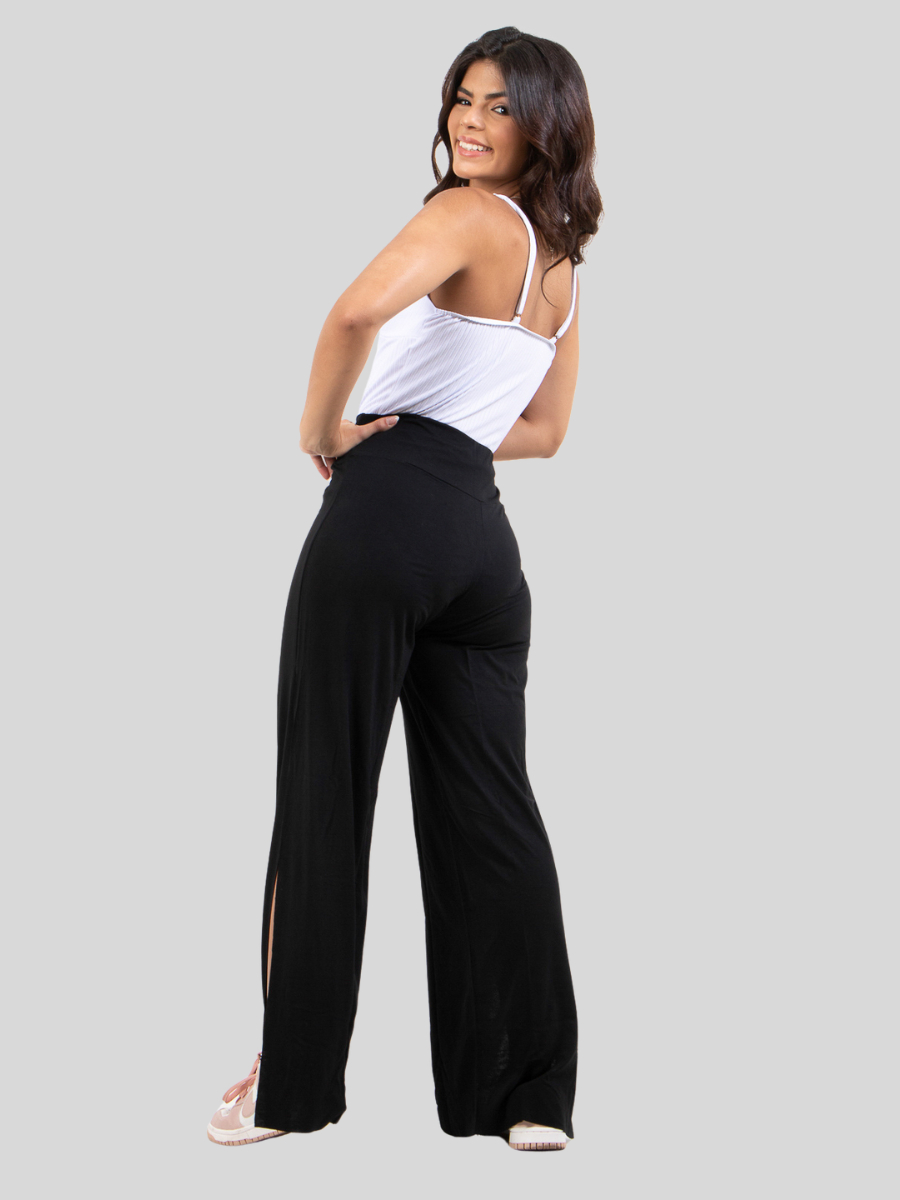 Calça Feminina Pantalona Com Recorte Na Lateral