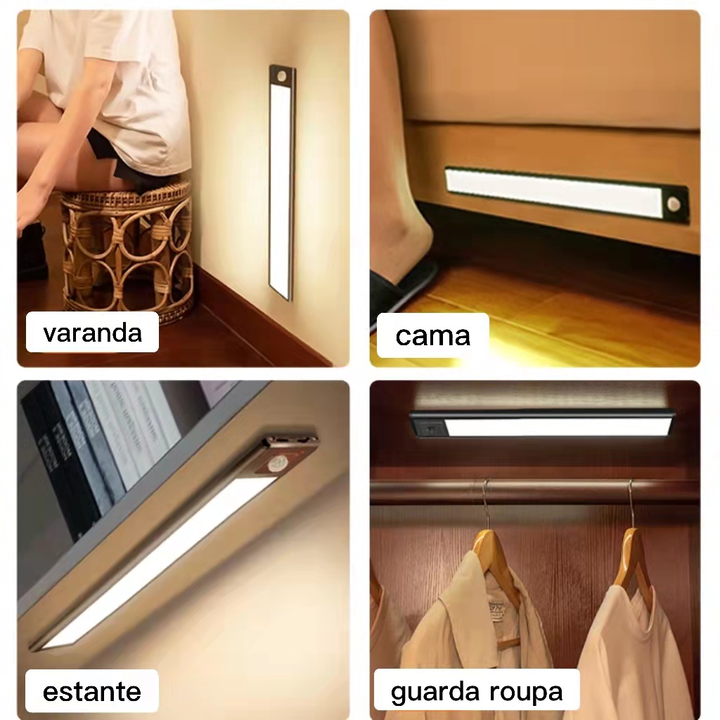 Luminária Com Sensor de Presença (somente no escuro) Led Recarregável com cabo Usb para Armário ou Guarda-roupa , Carca De Liga De Alumínio Específico Utilizado Na Área Da Aeronáutica.