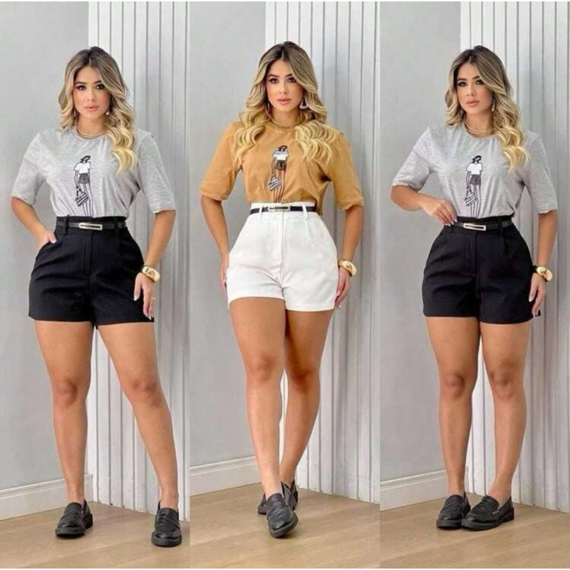 Short ZARAA Alfaiataria com cinto tendência blogueira-444