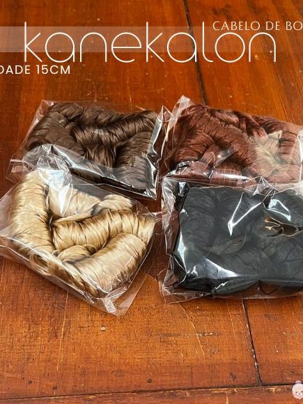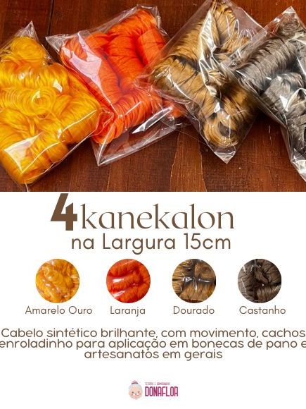 Kanekalon Kit 4Cores 15cm Cachos de Anjo Sintético para Amigurumis, Fantoches, bonecas