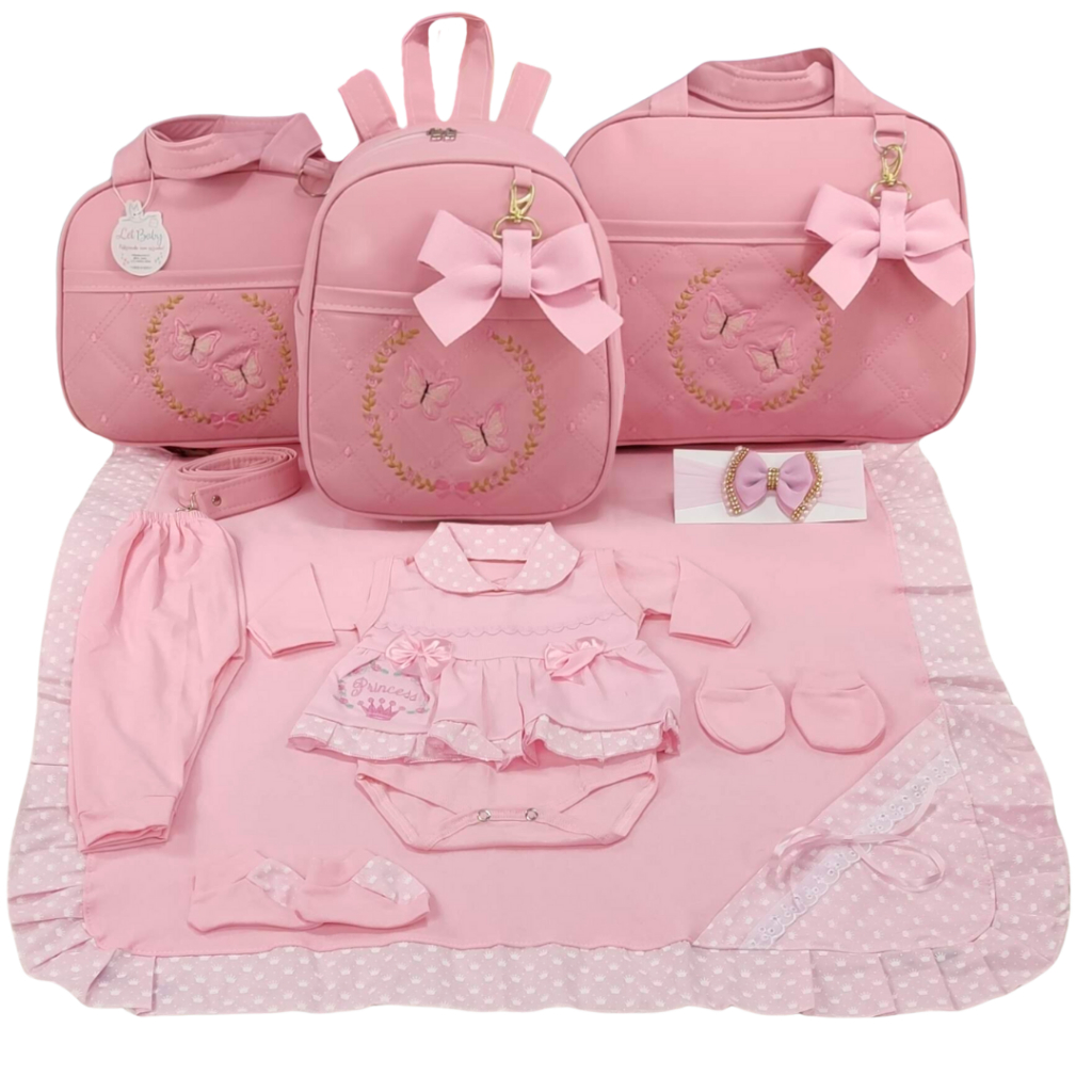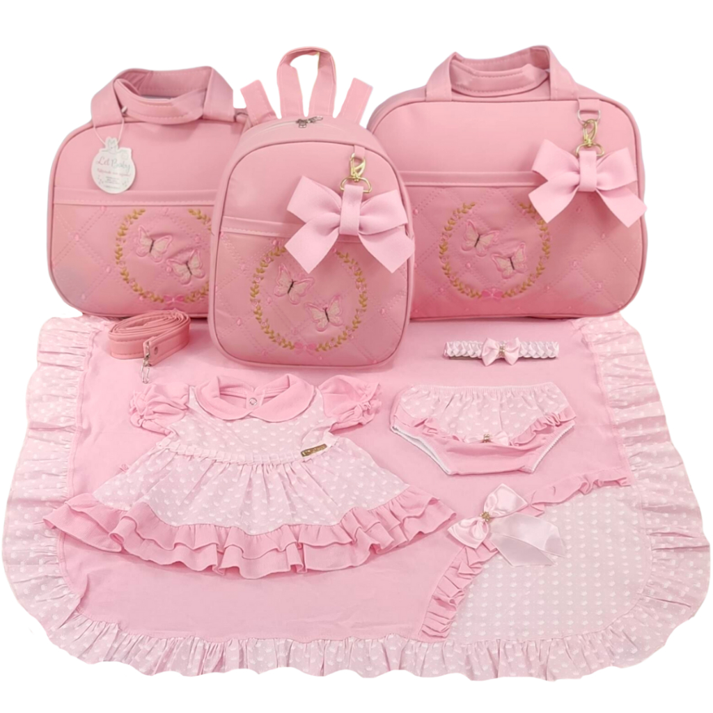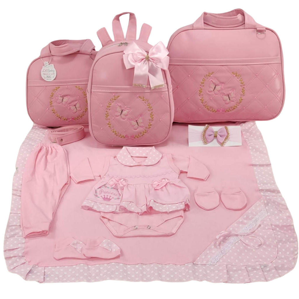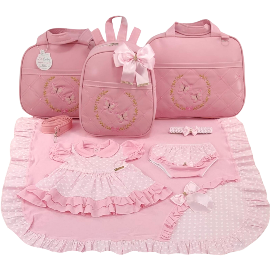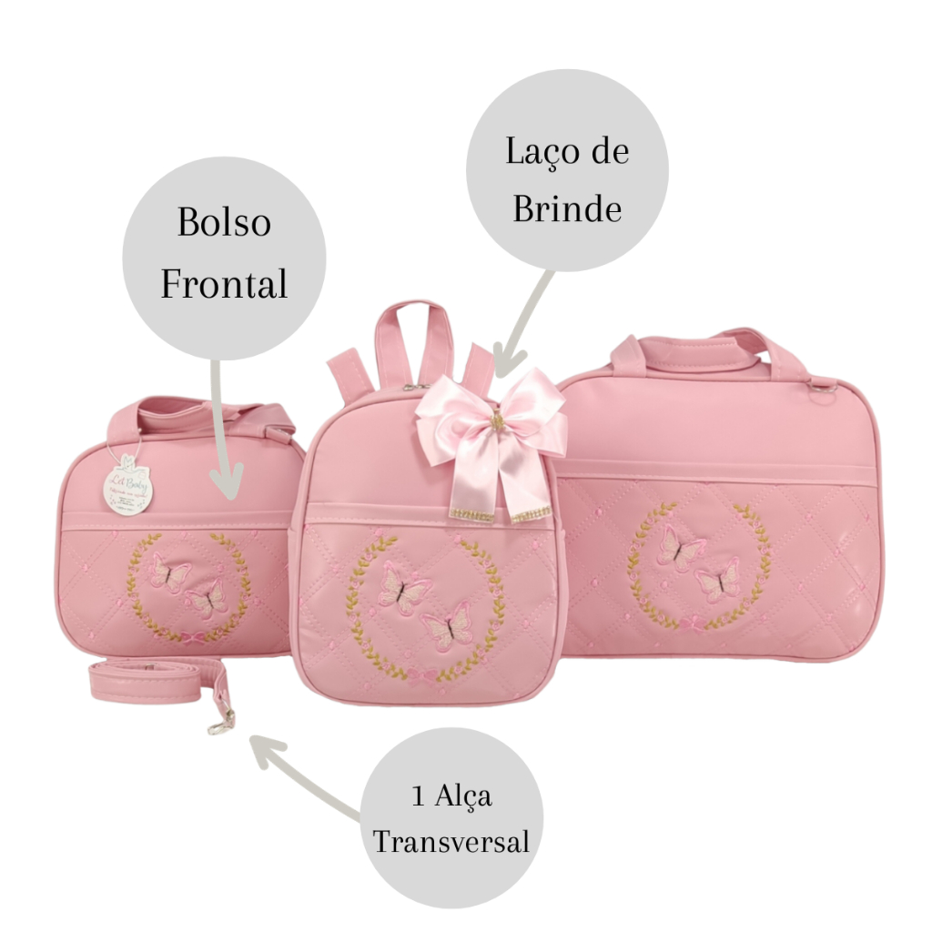 Kit Bolsa Maternidade Menina Varias Cores 3 Peças Borboleta + Saida Maternidade