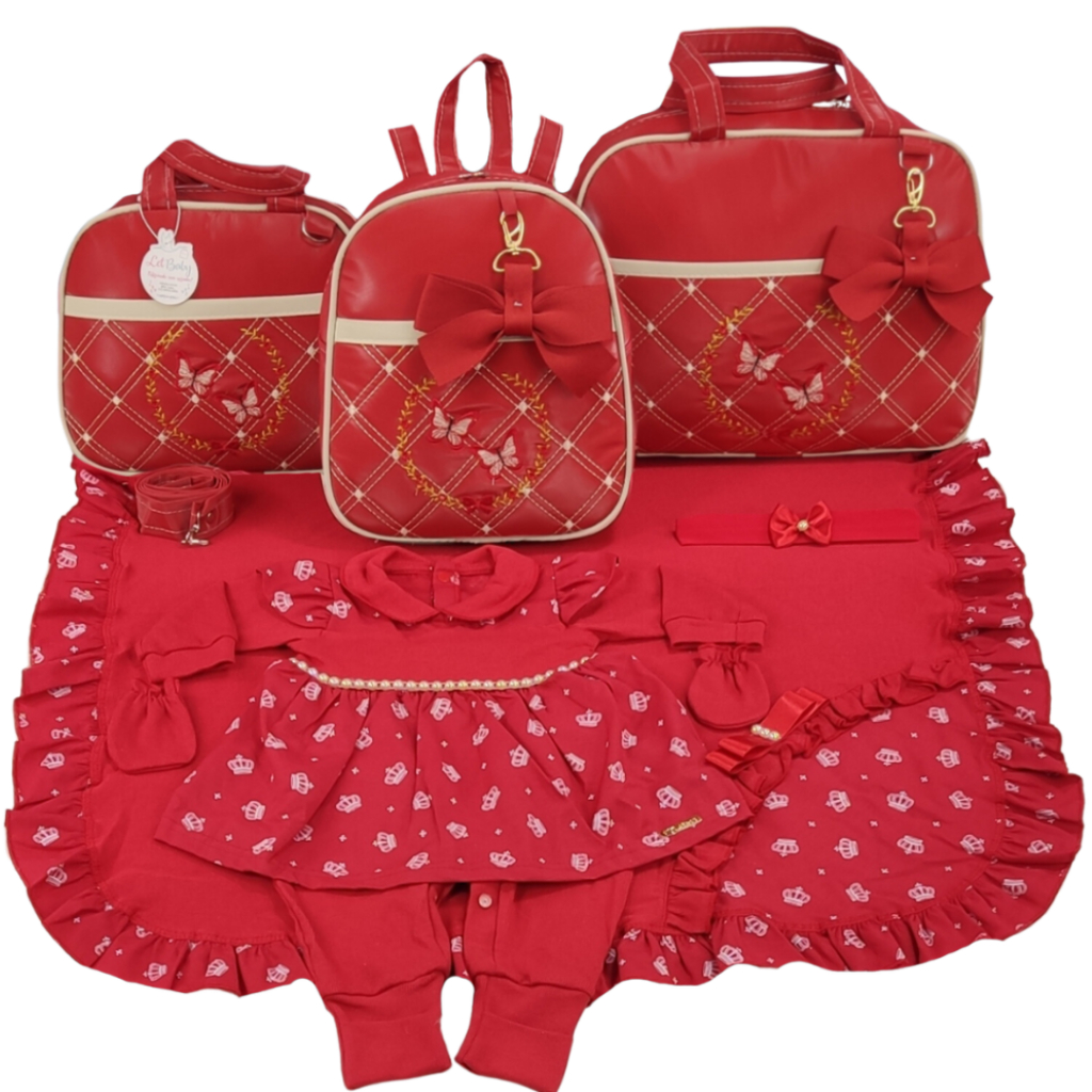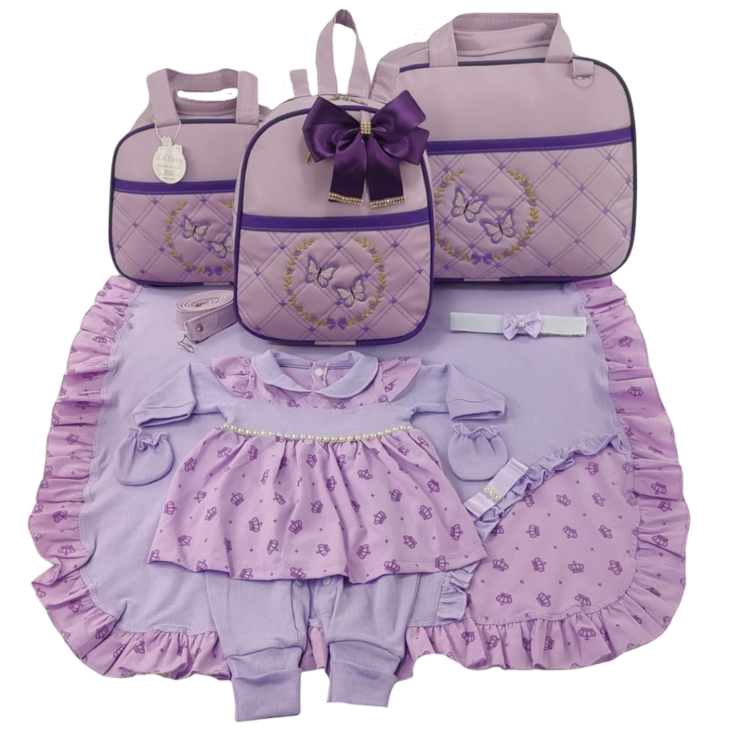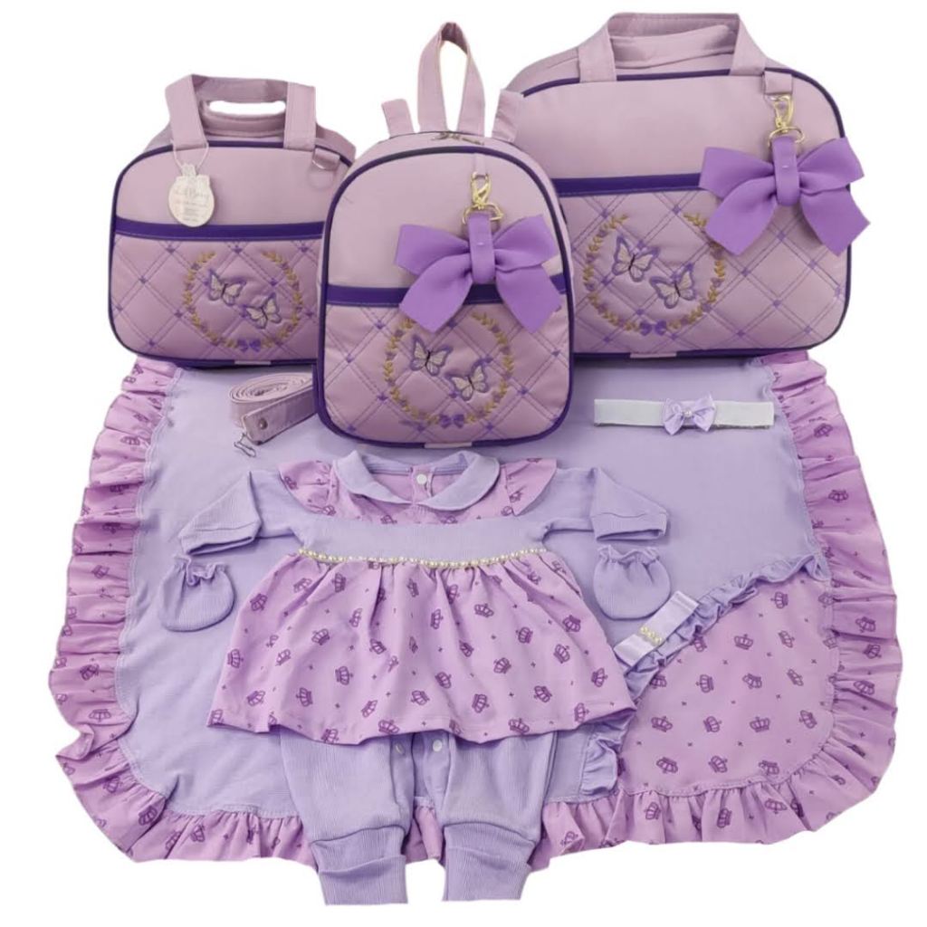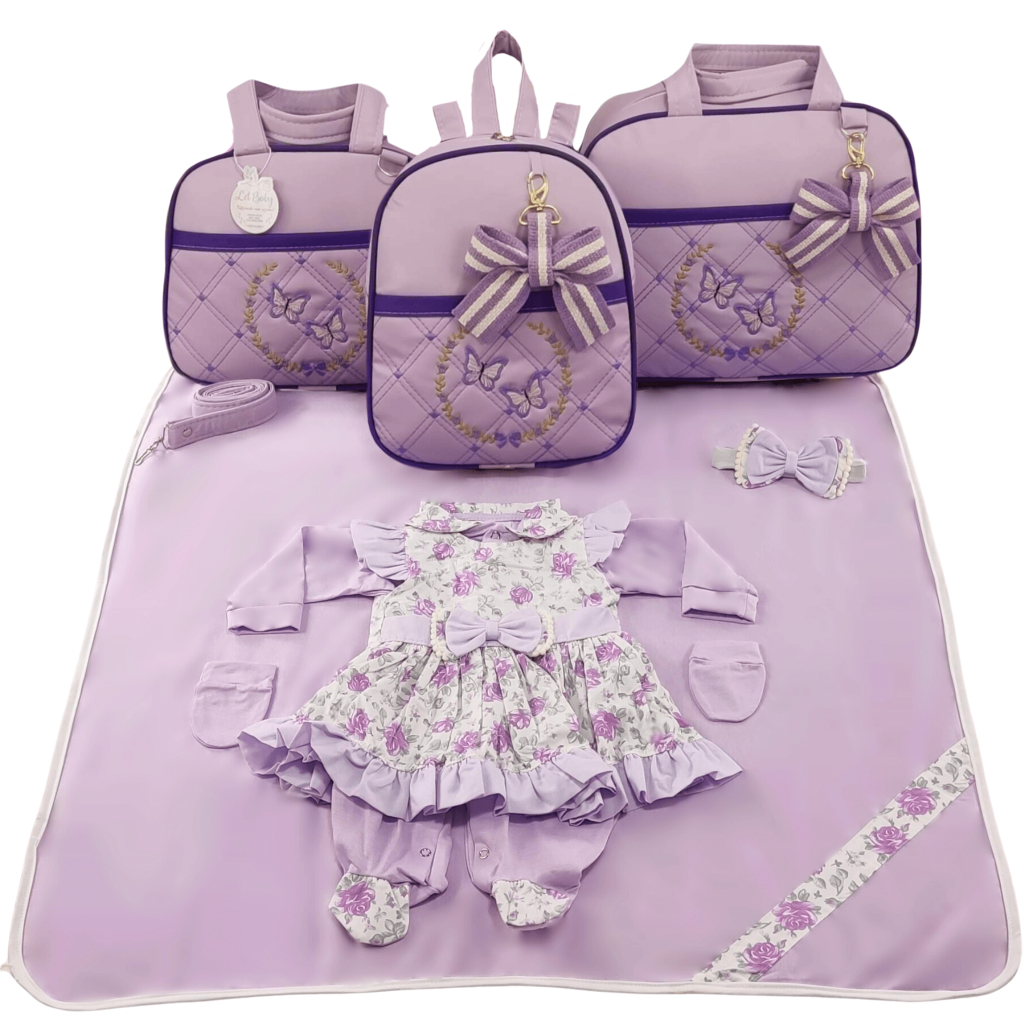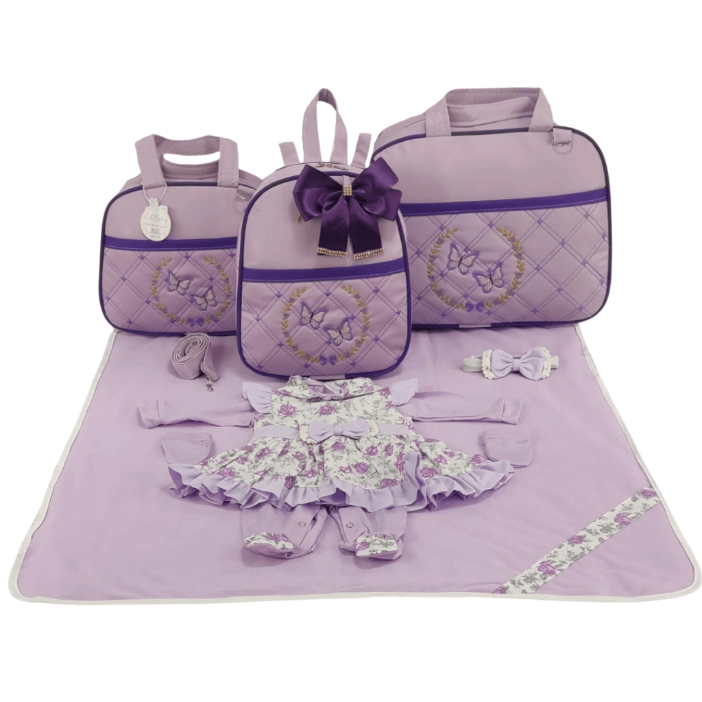 Kit Bolsa Maternidade Menina Varias Cores 3 Peças Borboleta + Saida Maternidade