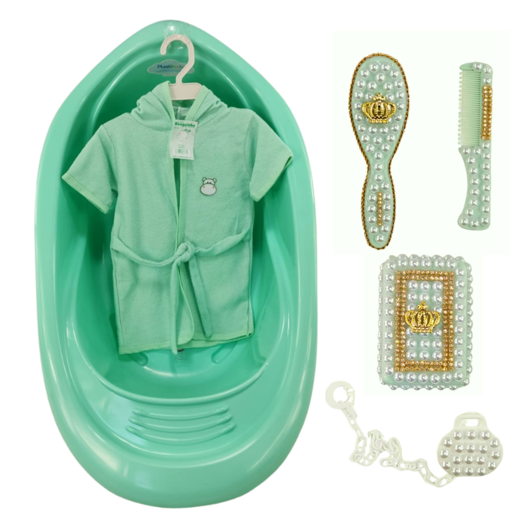 Kit Completo Banho Bebê - Banheira 22L Toalha Mamadeira Kit Fralda 5UN Roupão Balde Bacia Ítens Para o Enxoval e Higiene