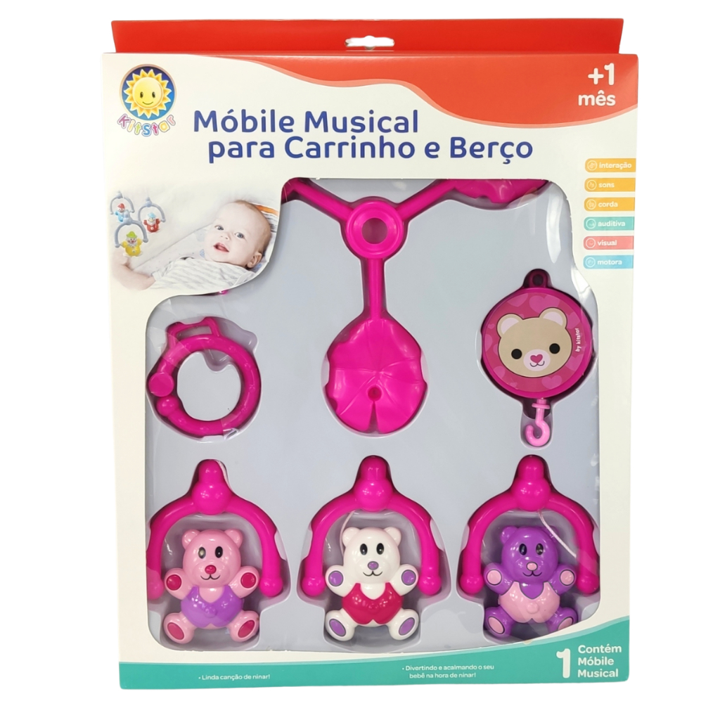Móbile Para Berço e Carrinho de Bebê Infantil Musical Giratório