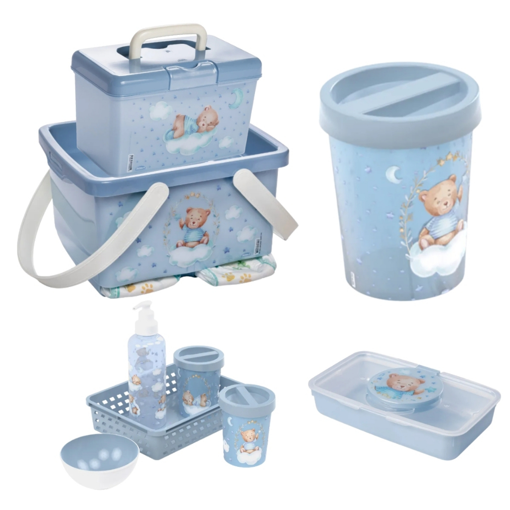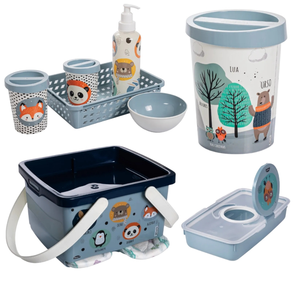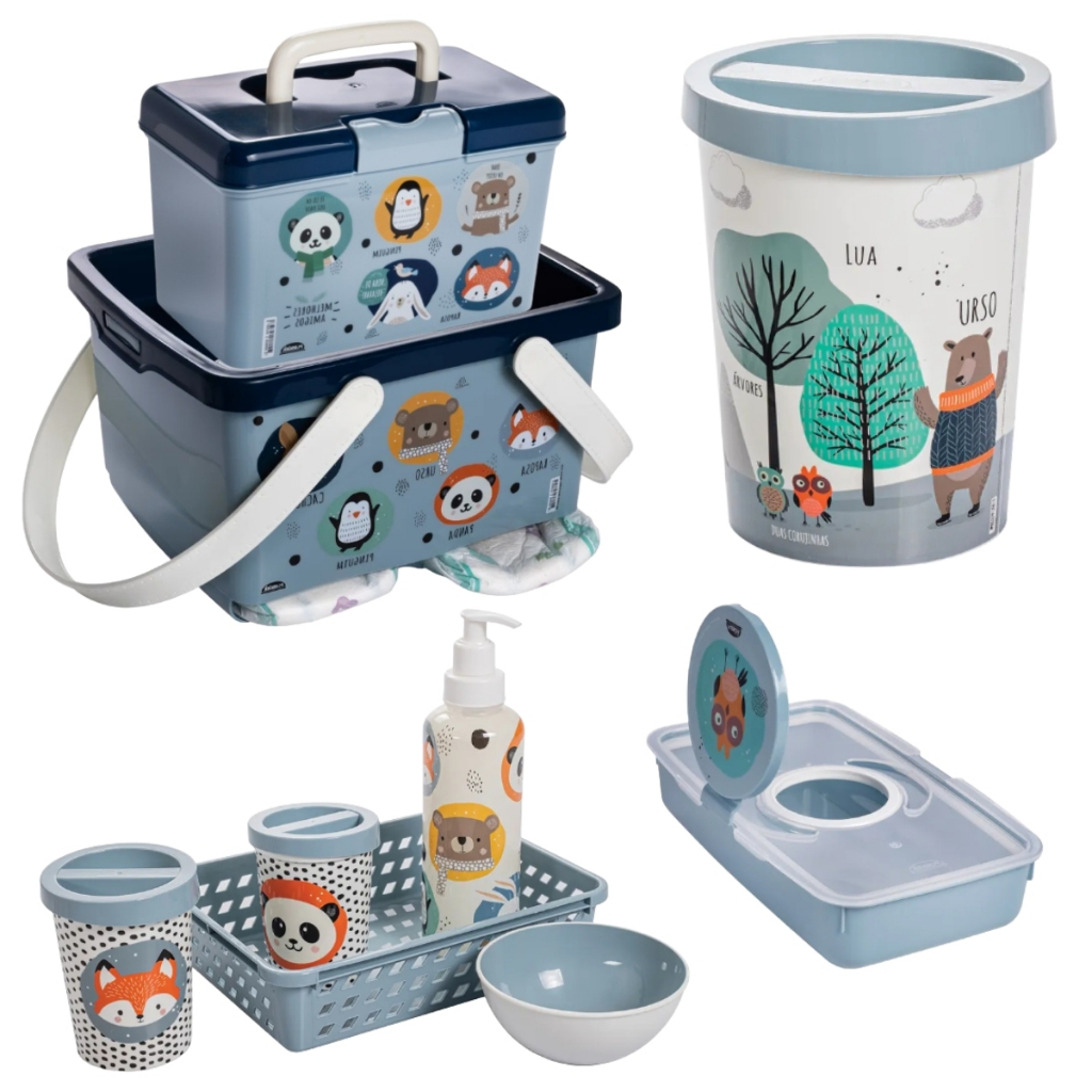 KIT TROCADOR BEBÊ PLASÚTIL LIXEIRA ORGANIZADOR FRALDAS KIT HIGIENE FARMACINHA PORTA LENÇO UMIDECIDO