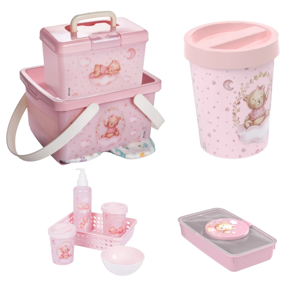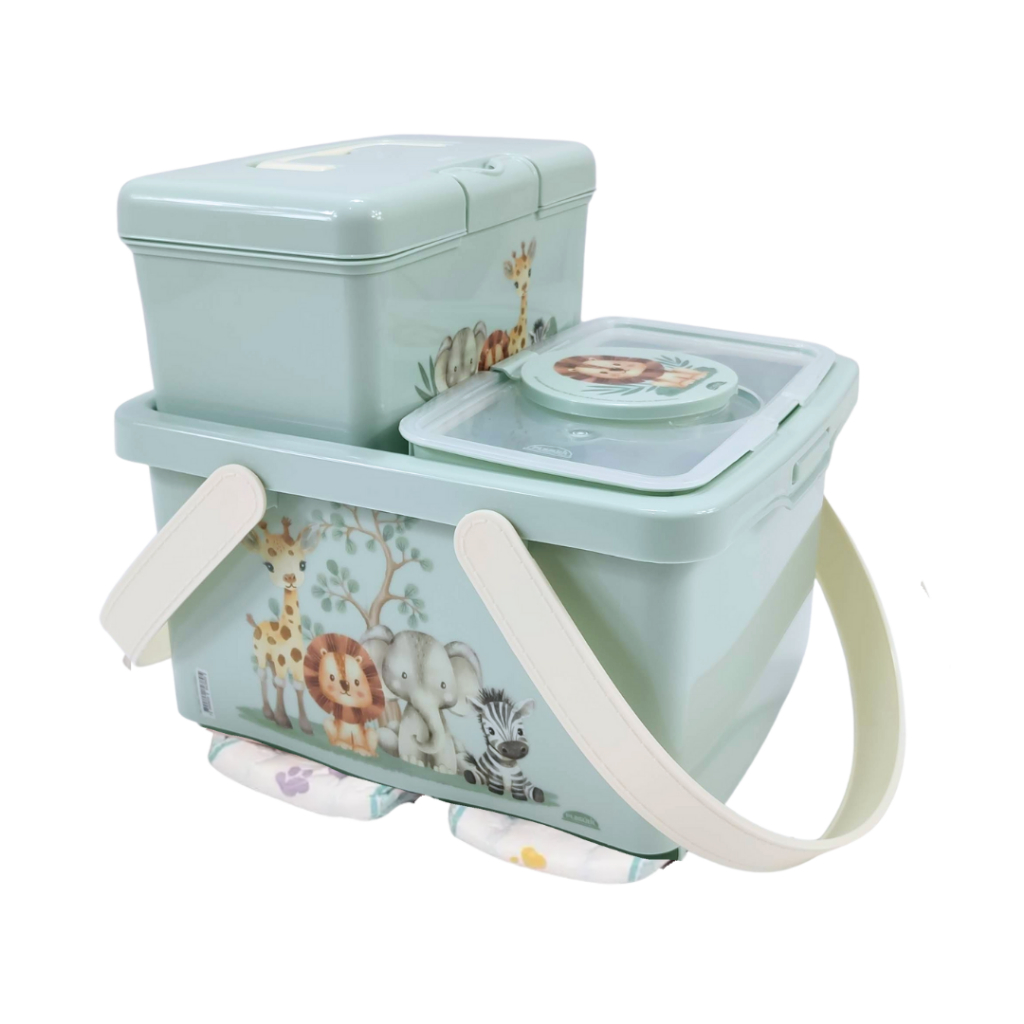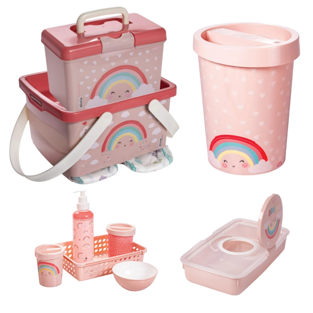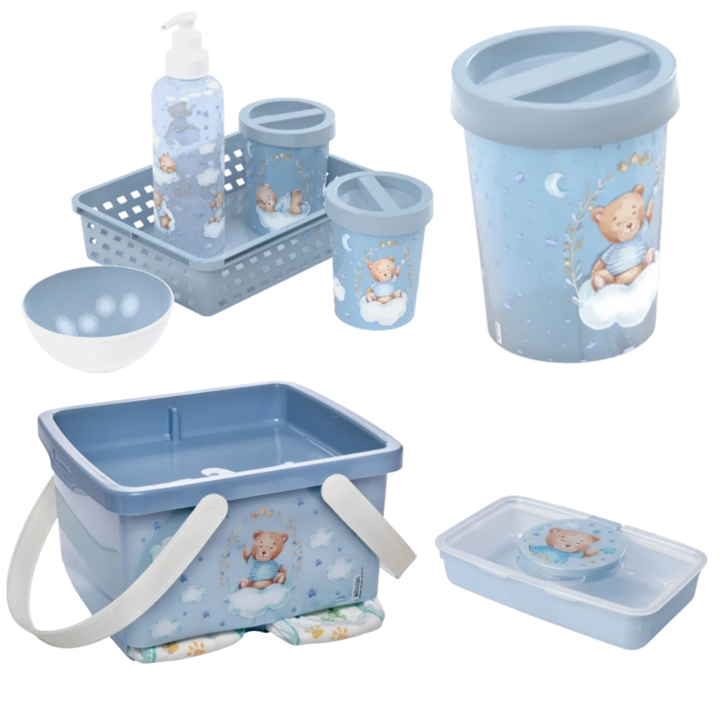 KIT TROCADOR BEBÊ PLASÚTIL LIXEIRA ORGANIZADOR FRALDAS KIT HIGIENE FARMACINHA PORTA LENÇO UMIDECIDO