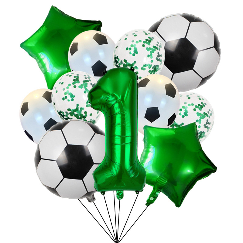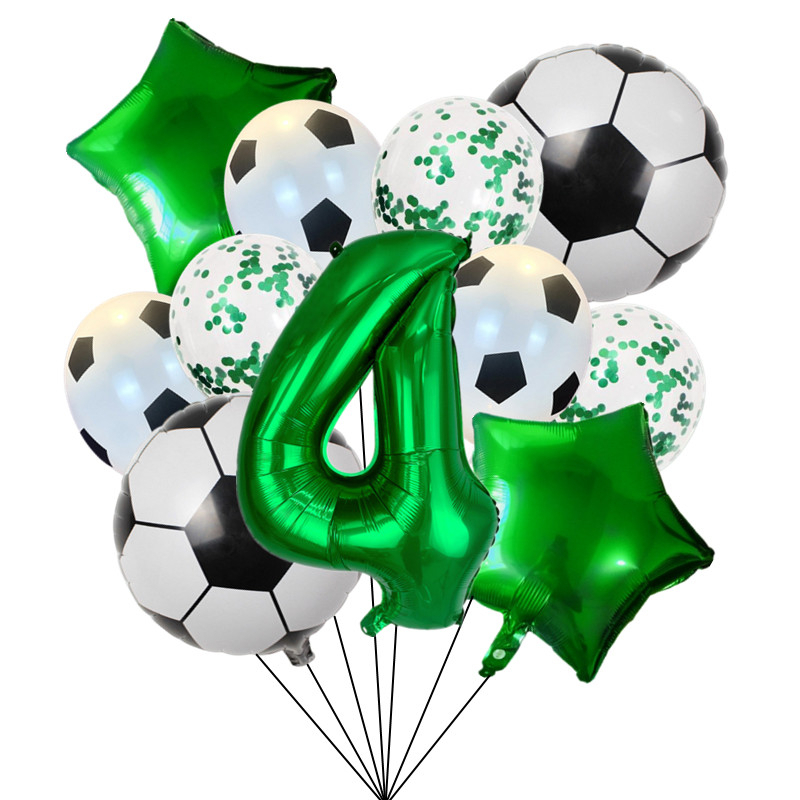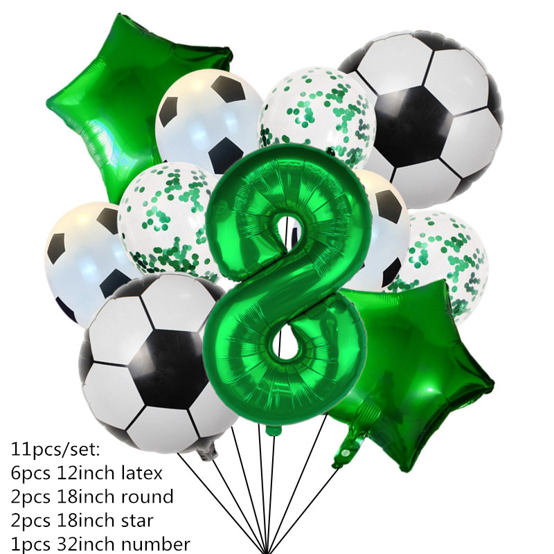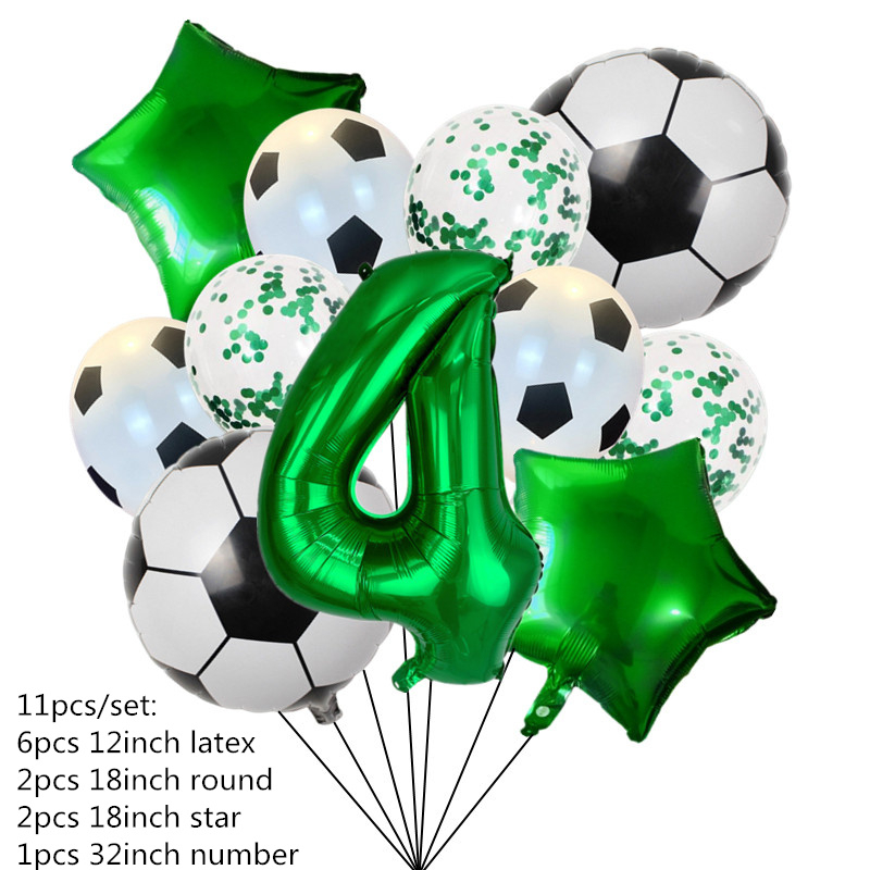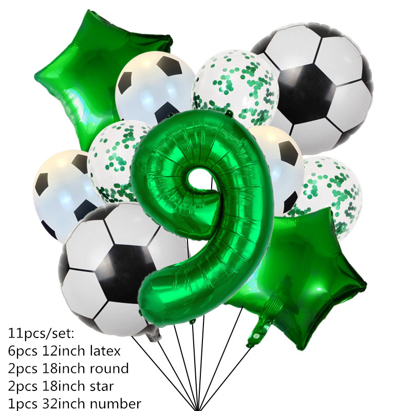 111pcs Folha De Hélio Globos Balões De Futebol Festa De Aniversário Decorações Kids Boy 32Inch Green Number Ball Soccer Sports Supplies
