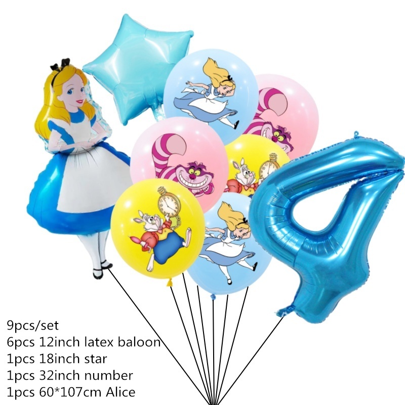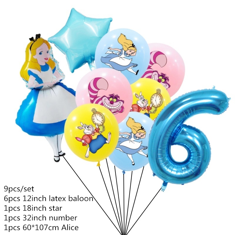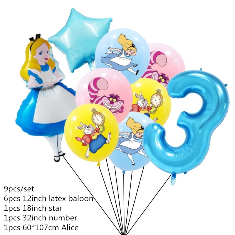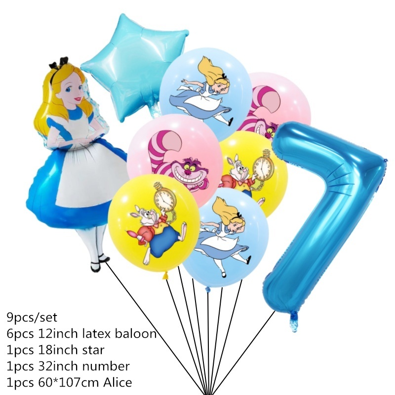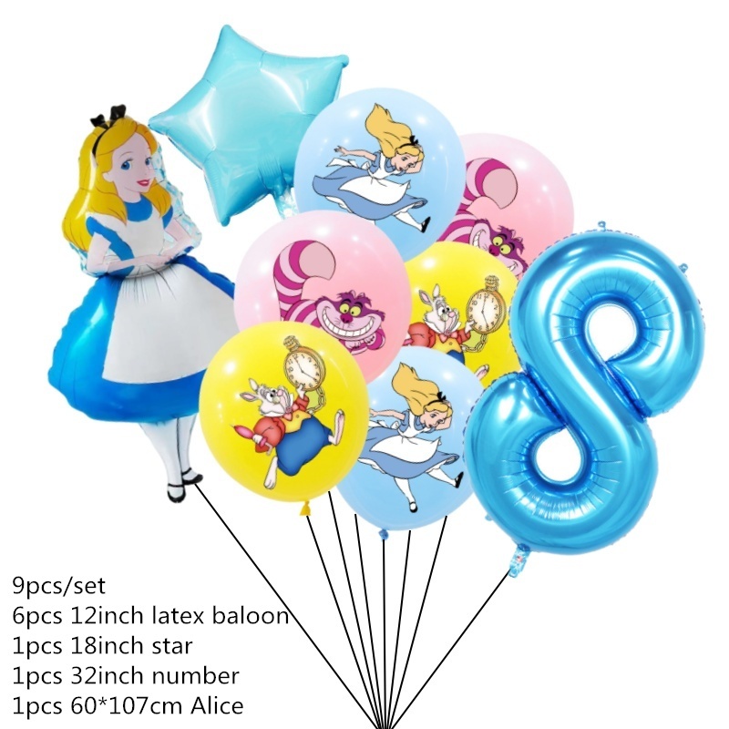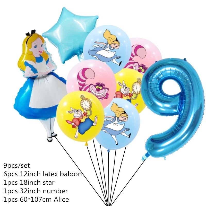 9pcs Alice No País Das Maravilhas Grande Pôquer 32 Polegadas Número Balão Conjunto De Balões Pink Blue Girl's Gifts Decoração Festa De Aniversário Baby Shower Supplies