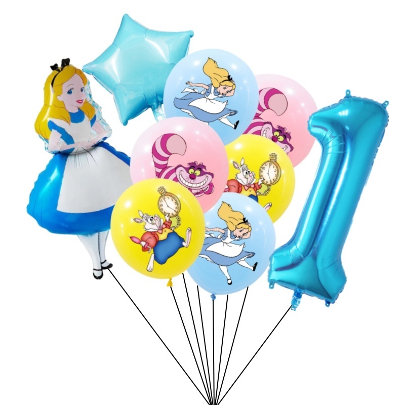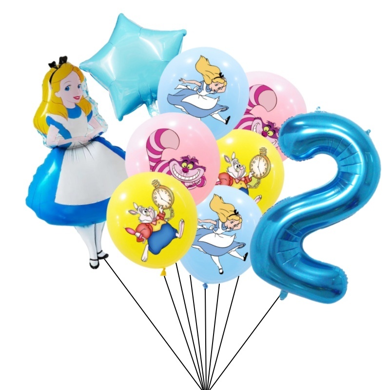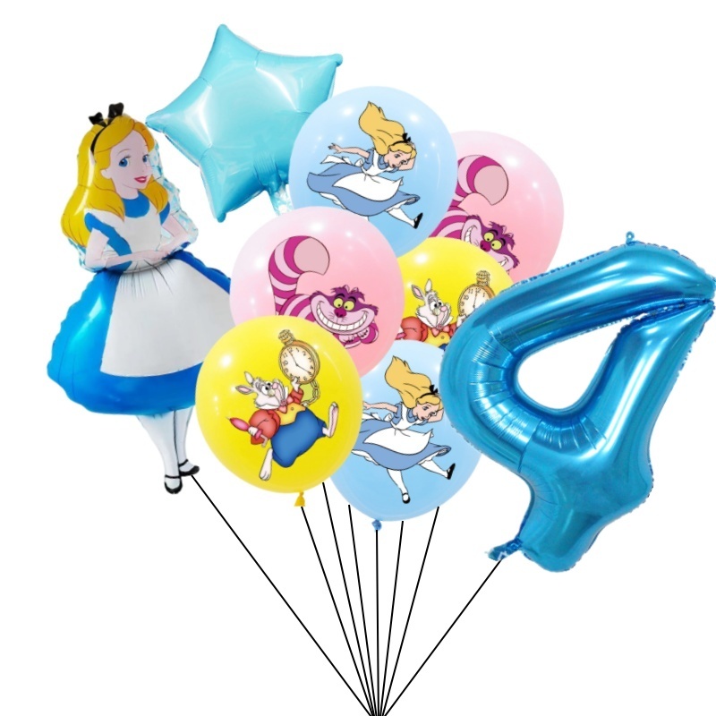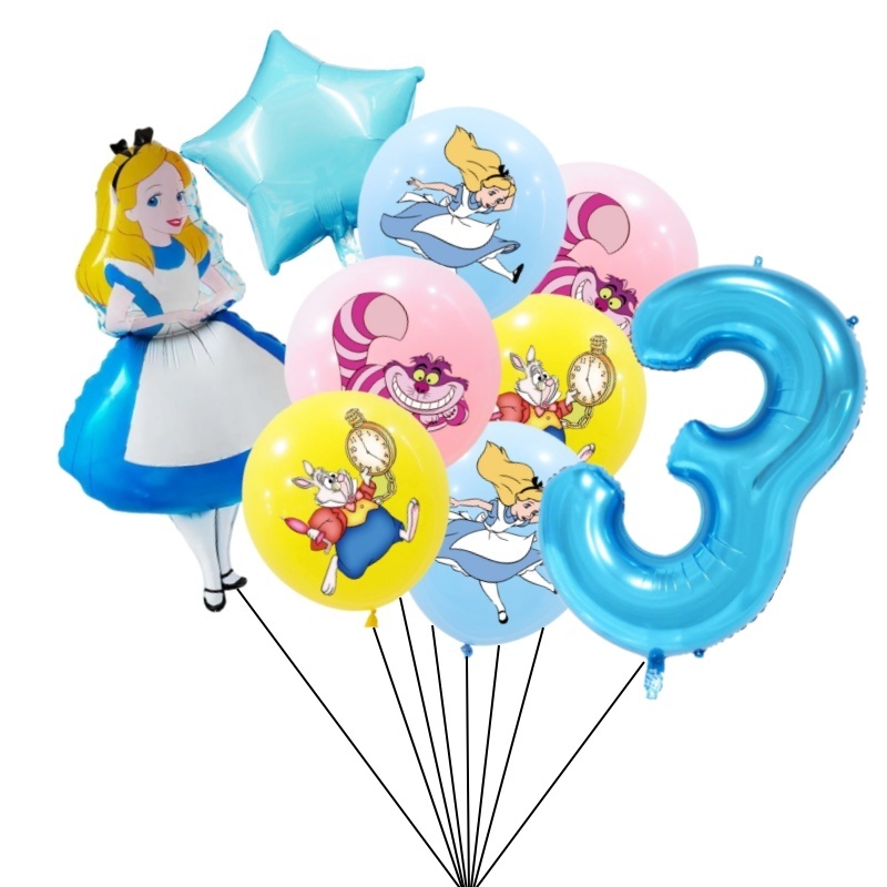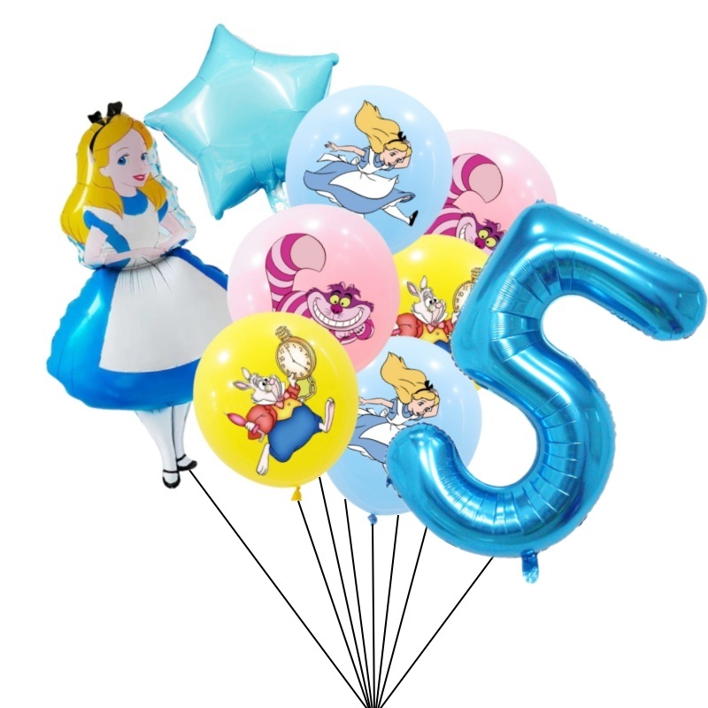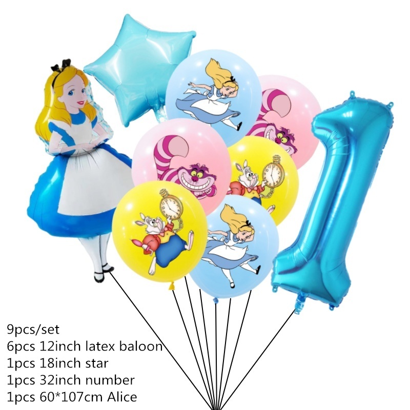 9pcs Alice No País Das Maravilhas Grande Pôquer 32 Polegadas Número Balão Conjunto De Balões Pink Blue Girl's Gifts Decoração Festa De Aniversário Baby Shower Supplies