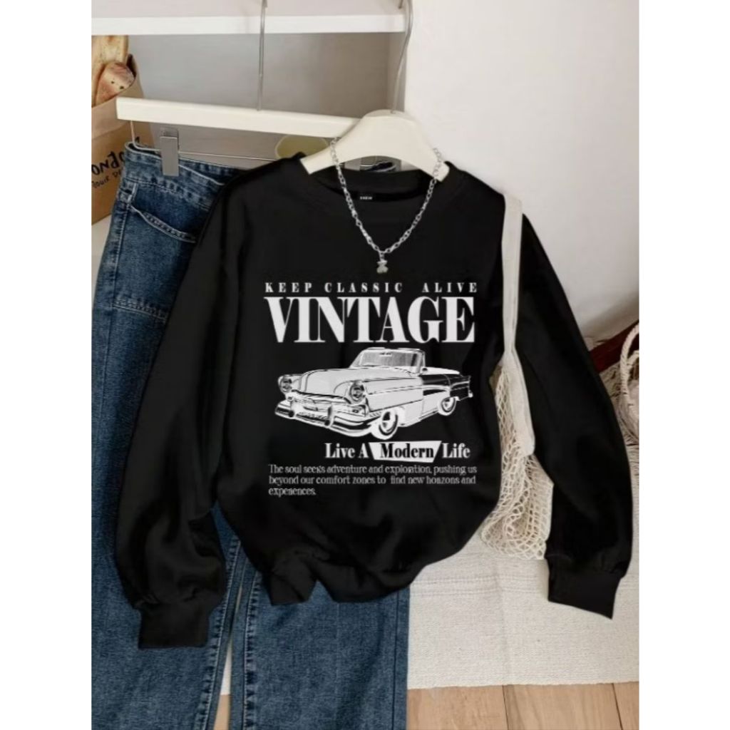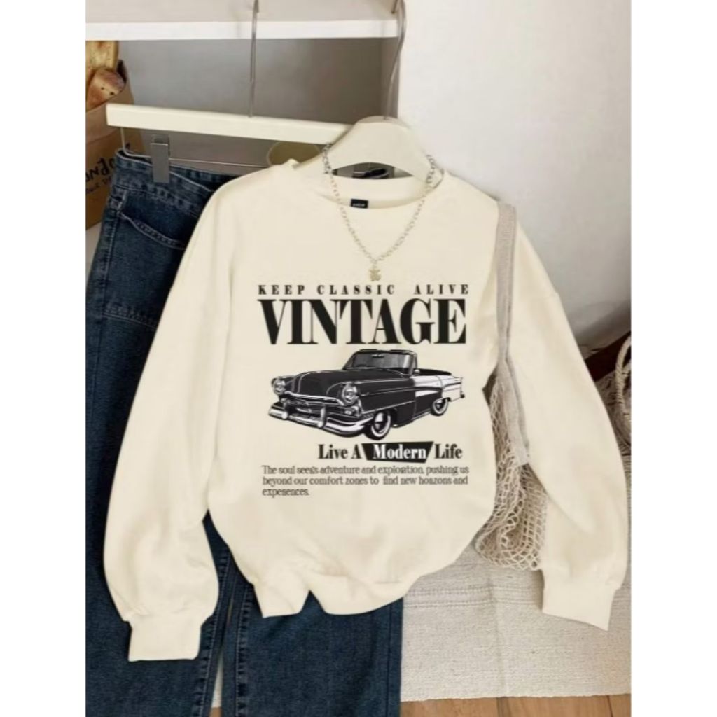 Moletom Delicado Estampa Vintage Carros Feminino Inverno Algodão Flanelado