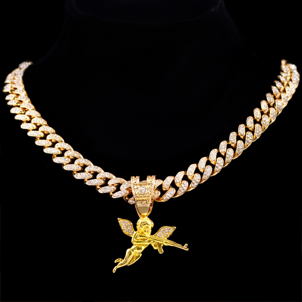 Colar De Anjo Vingador Cubano Masculino Exclusivo Moda Cubana Diamante Feminino