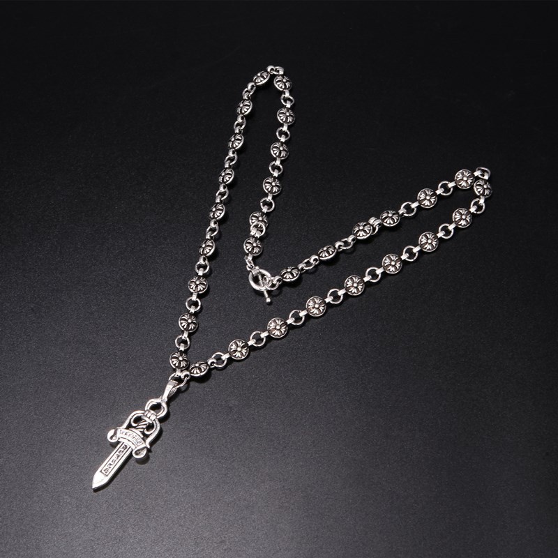 Moda Retro Prata Européia Americana Cabeleireiro Europeu Americano Mesmo Estilo Eletrodeposição Prata Grande Espada Pingente Corrente de Suéter Pingente Tendência Acessórios