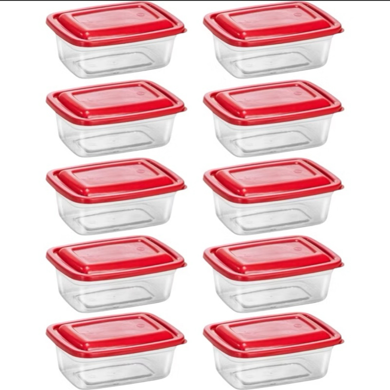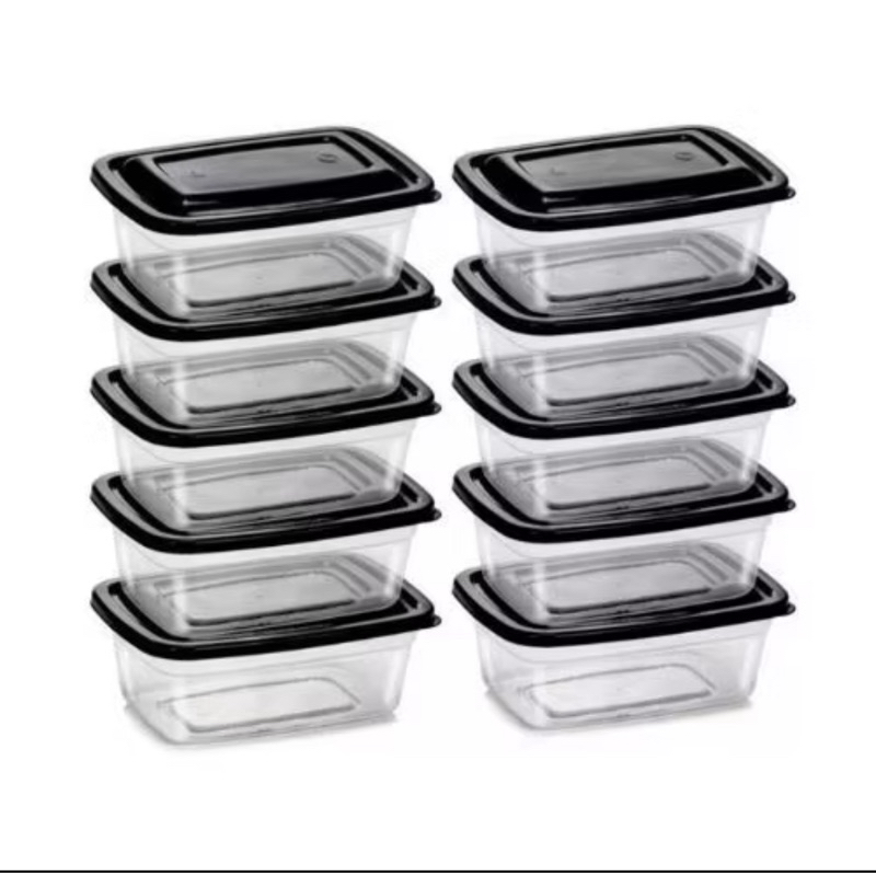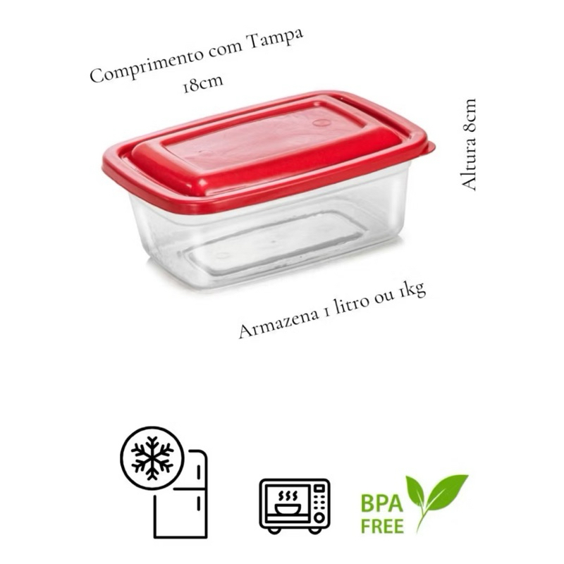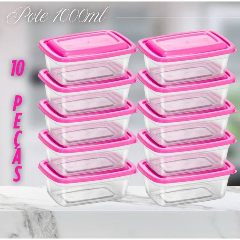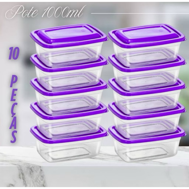 kit 10 ou 5 Potes 1 litro Transparente com tampa Marmita Fitness Organizador Microondas Freezer BPA Free