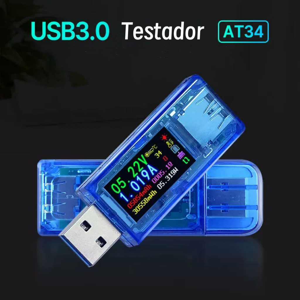 Voltímetro digital AT34, amperímetro, instrumento de teste de capacidade da bateria, carregador USB