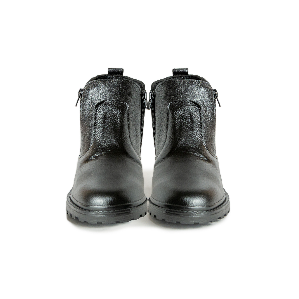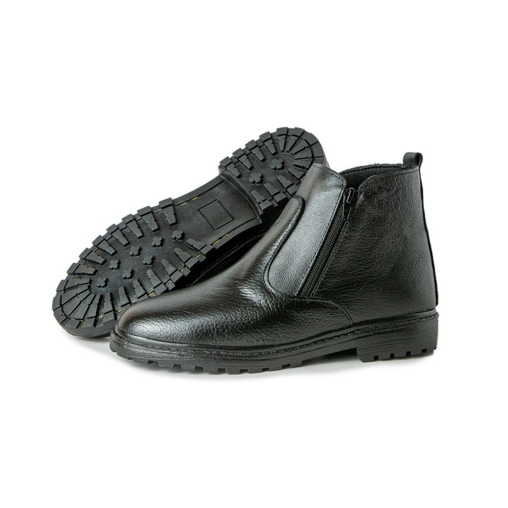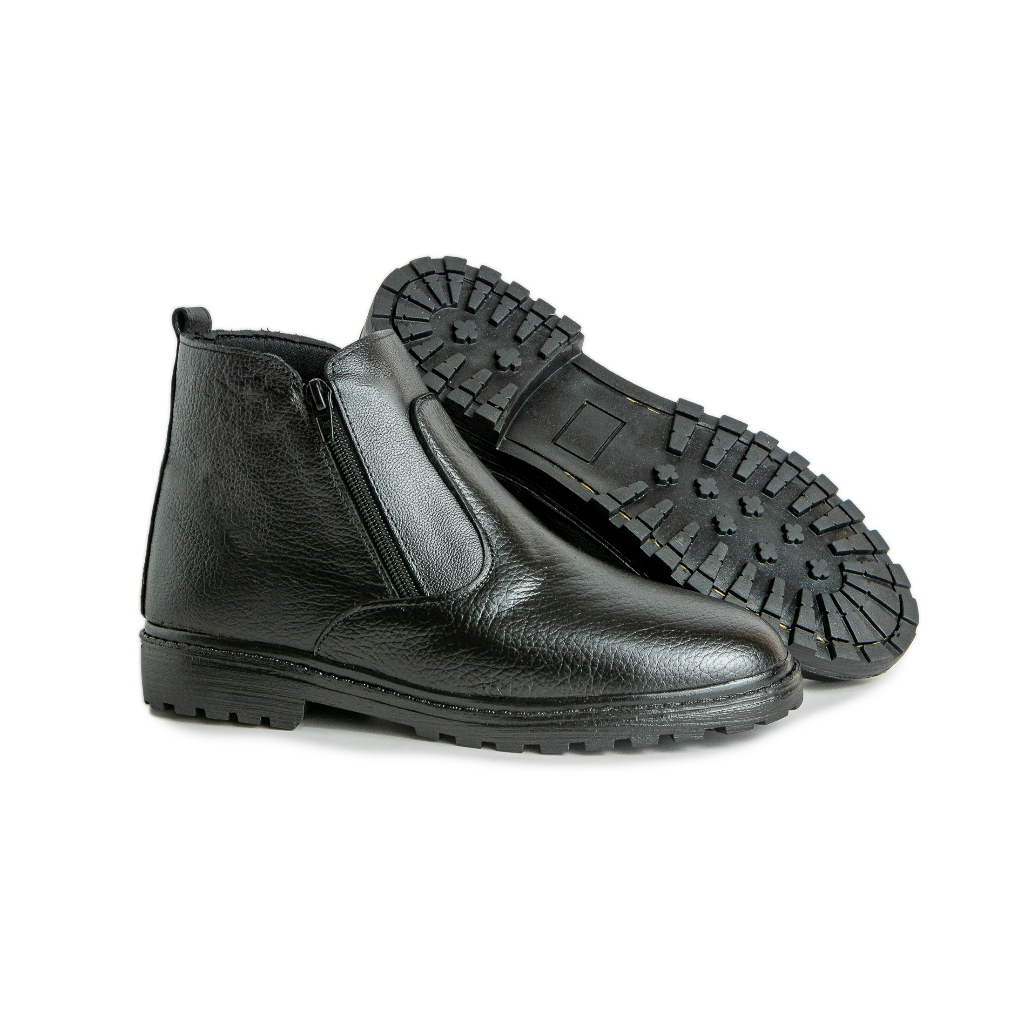 Bota Botina em Couro legítimo Casual Masculina Preto de zíper Social Clássica 100% couro Ref 400