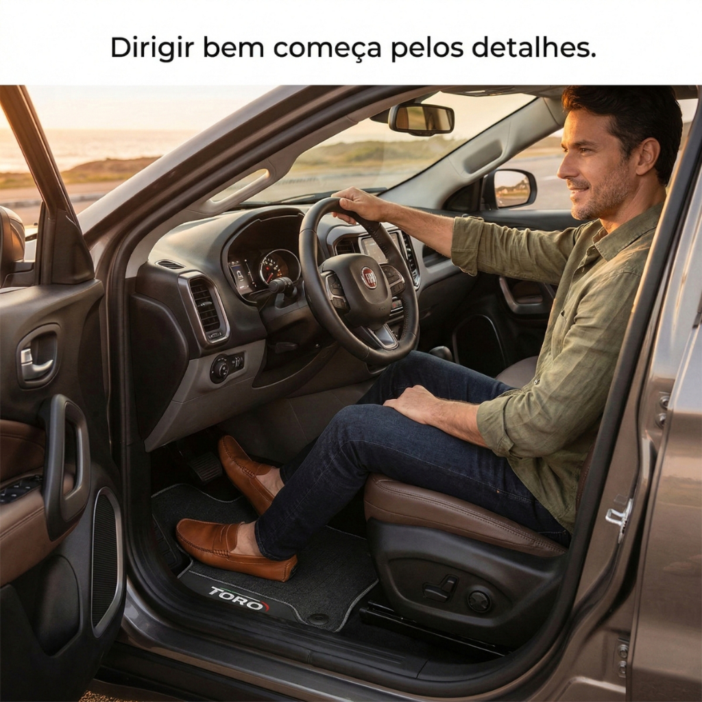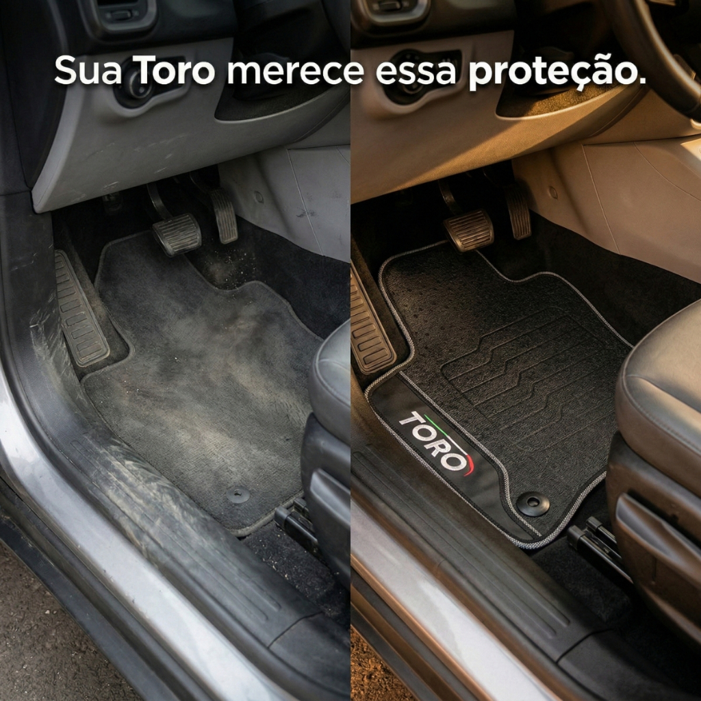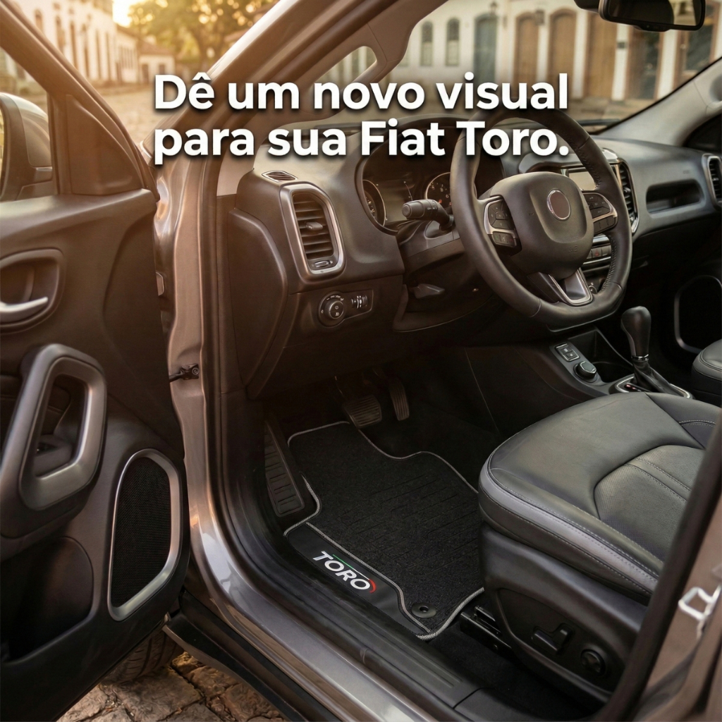 Kit Tapete para Automóveis para Fiat Toro 2016 A 2026 Emborrachado Lavável Preto 3 peças completo