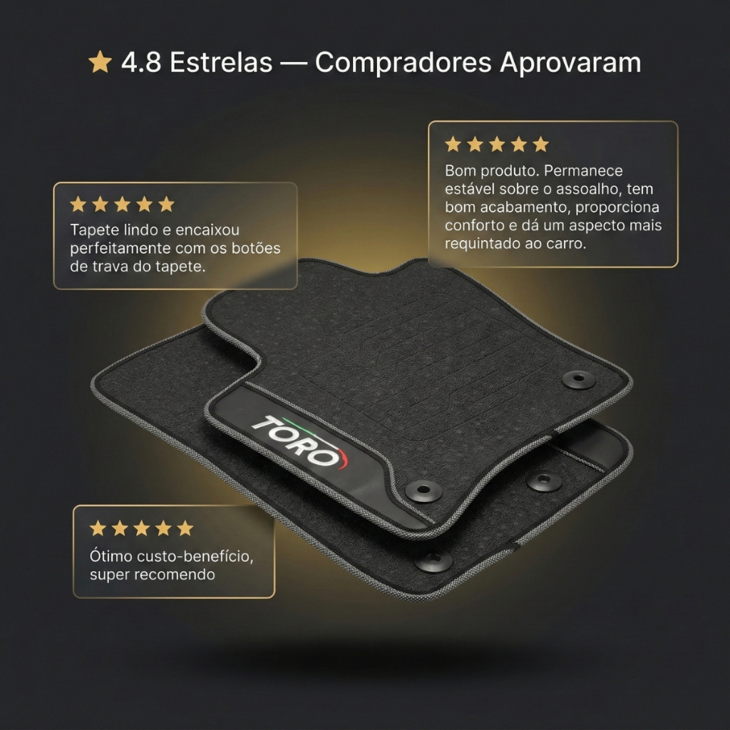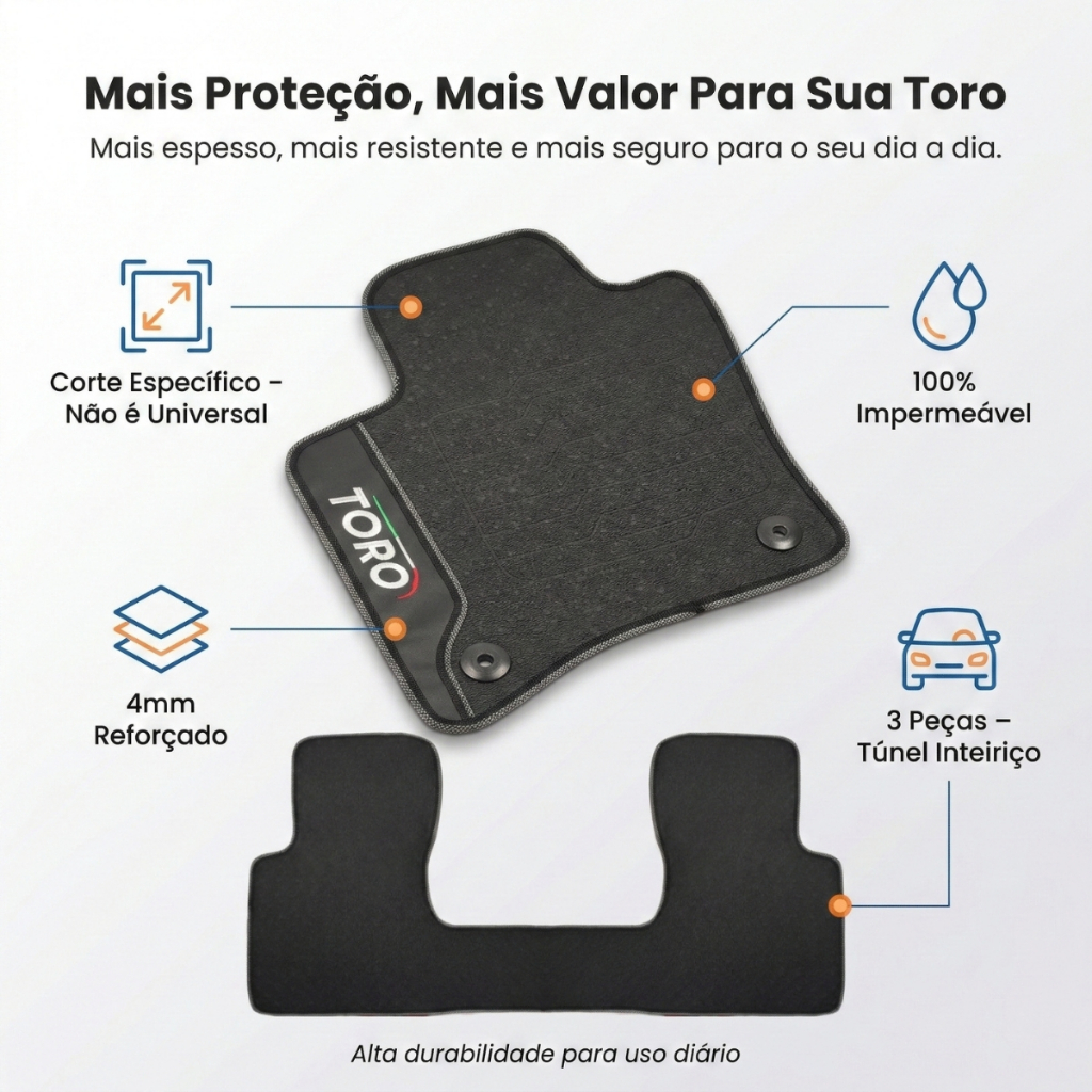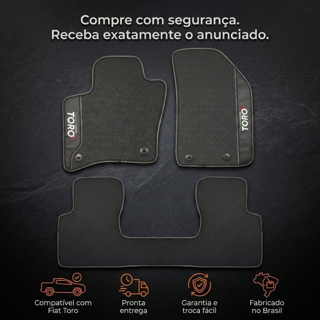Kit Tapete para Automóveis para Fiat Toro 2016 A 2026 Emborrachado Lavável Preto 3 peças completo