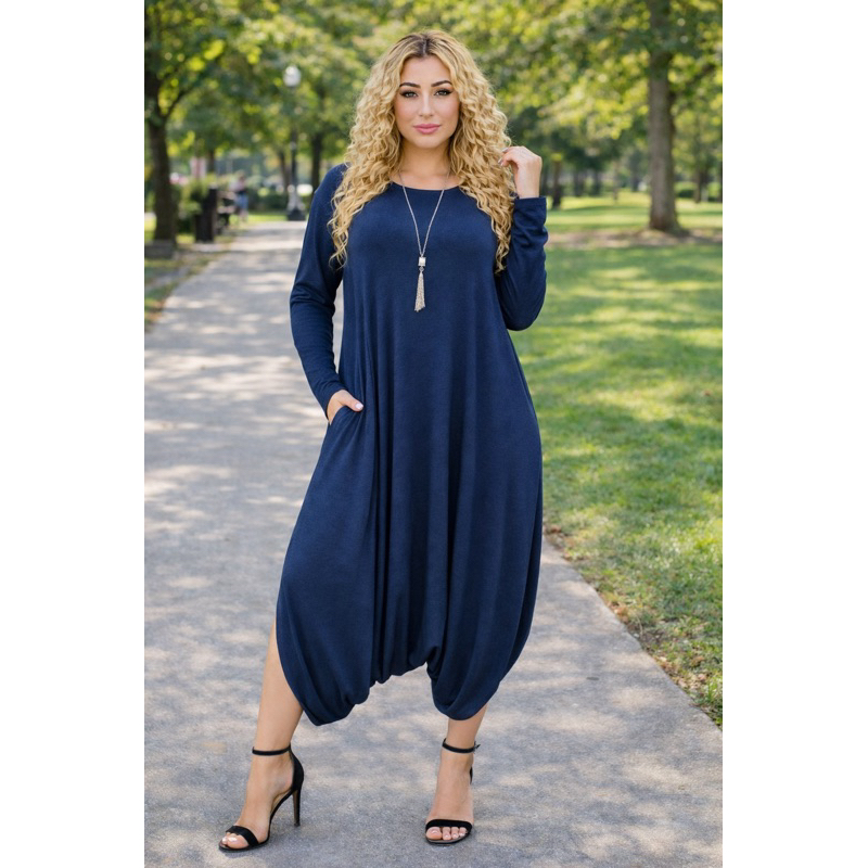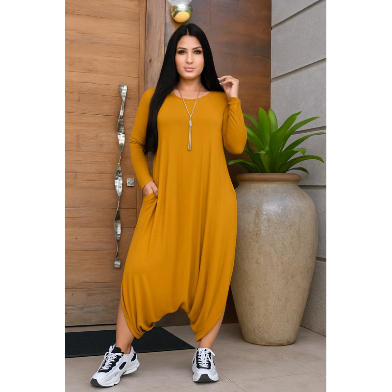 Macacão Saruel Manga Longa Com Bolso Moda Feminino Viscolaycra