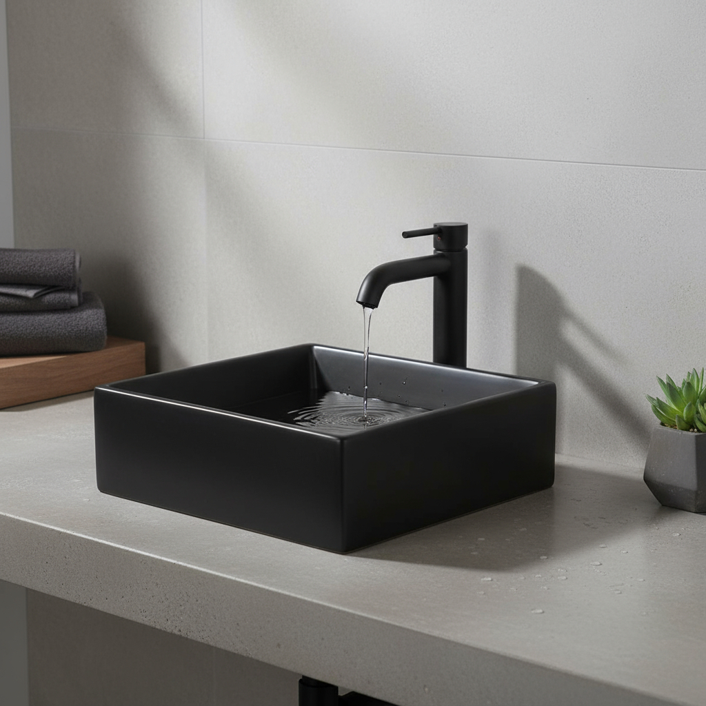 Cuba Tulipa Banheiro Lavabo Quadrada 30x27cm Mármore Sintético