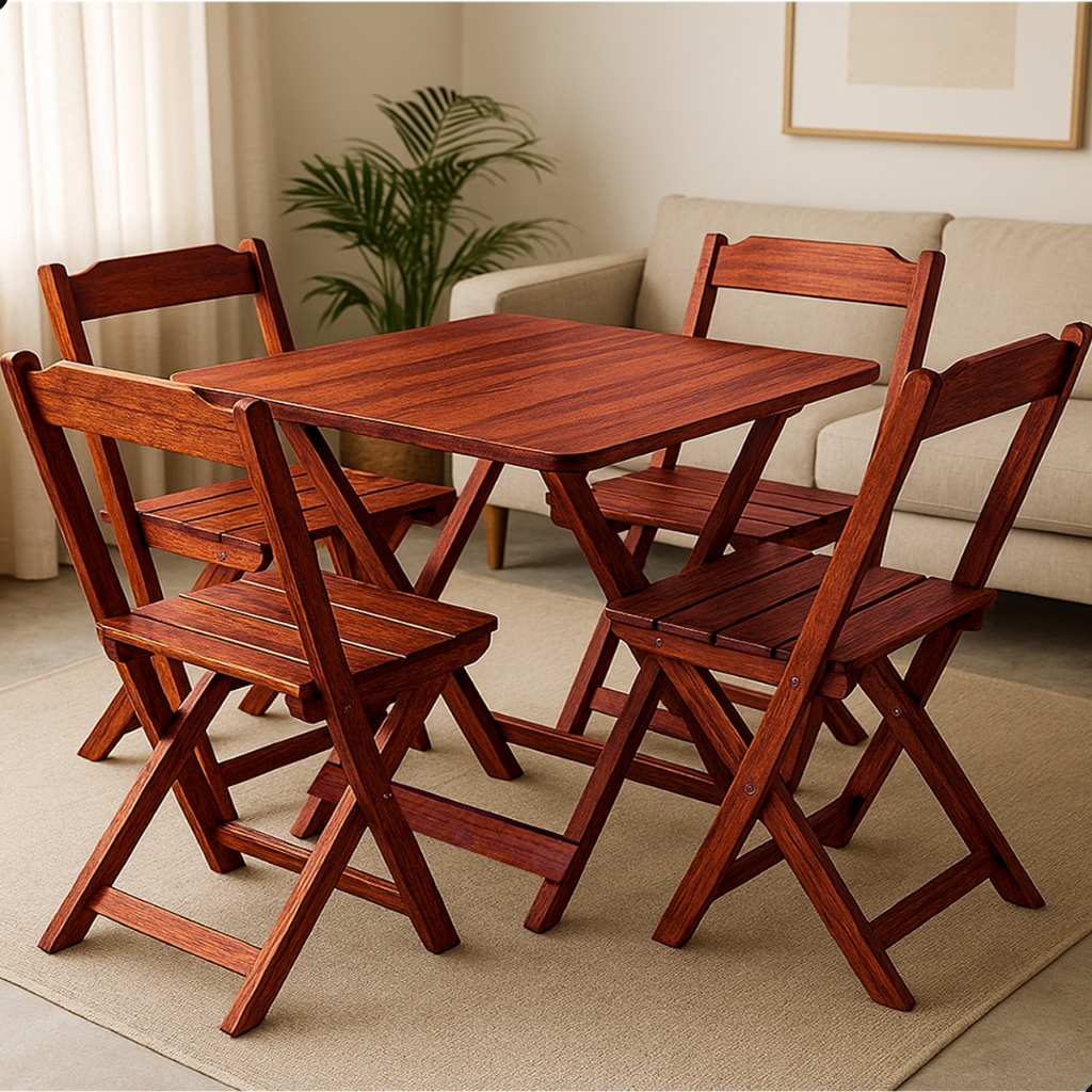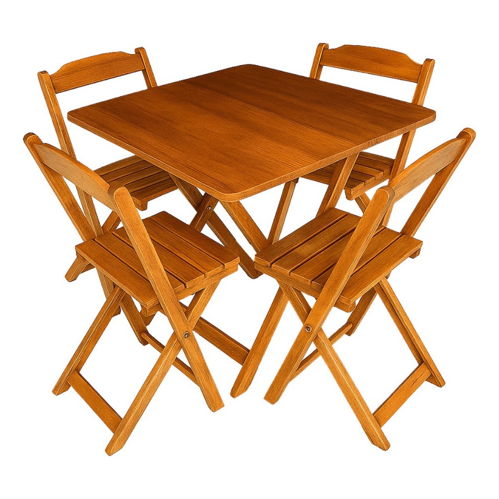 Jogo De Mesa Dobrável 70x70 C/ 4 Cadeiras Madeira Maciça