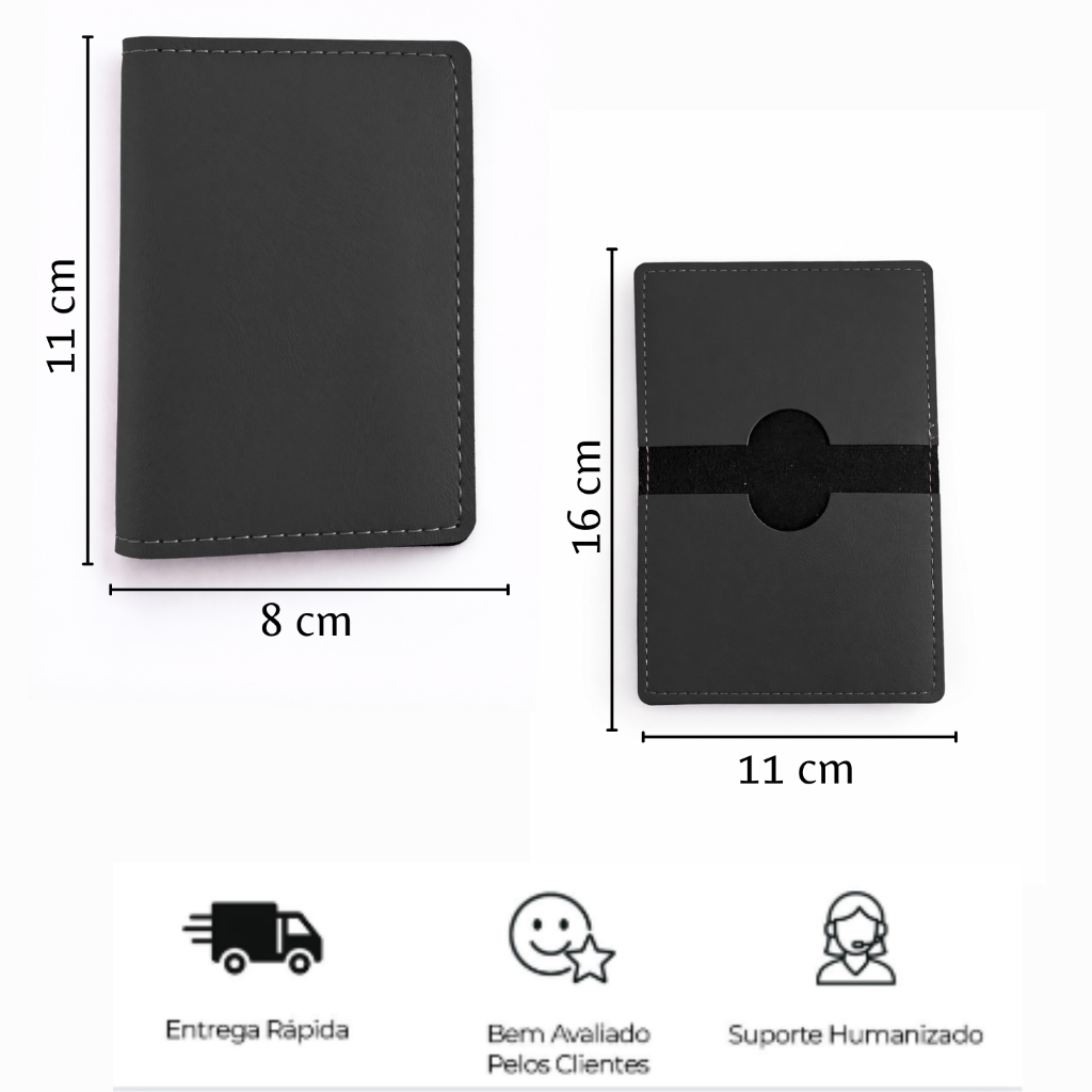 Carteira Porta Documentos Couro Preto Vertical Slim