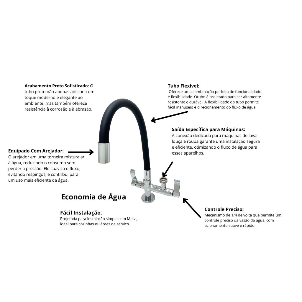Torneira Flexível de Mesa Cozinha Com Saída para Máquina De Lavar Louça e Roupa Praticidade e Economia