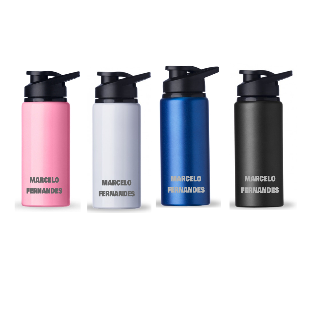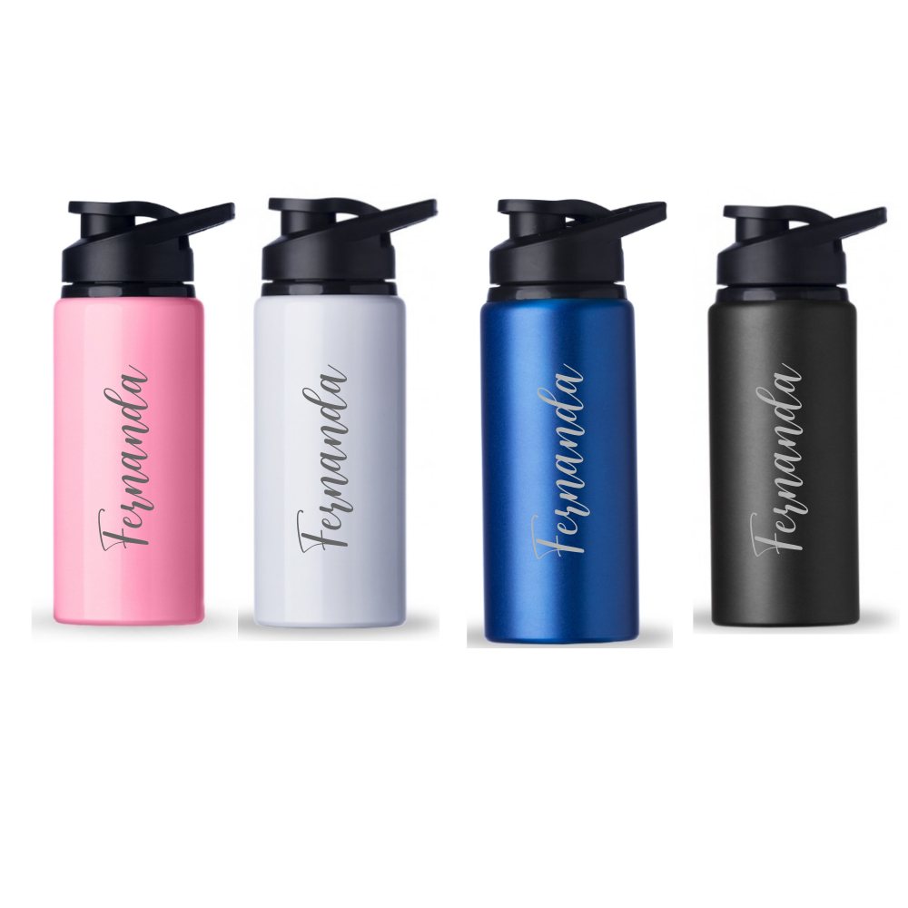 Garrafa Alumínio 600ml Personalizada com Nome Fitness Squeeze De Água Camping Academia escola trabalho
