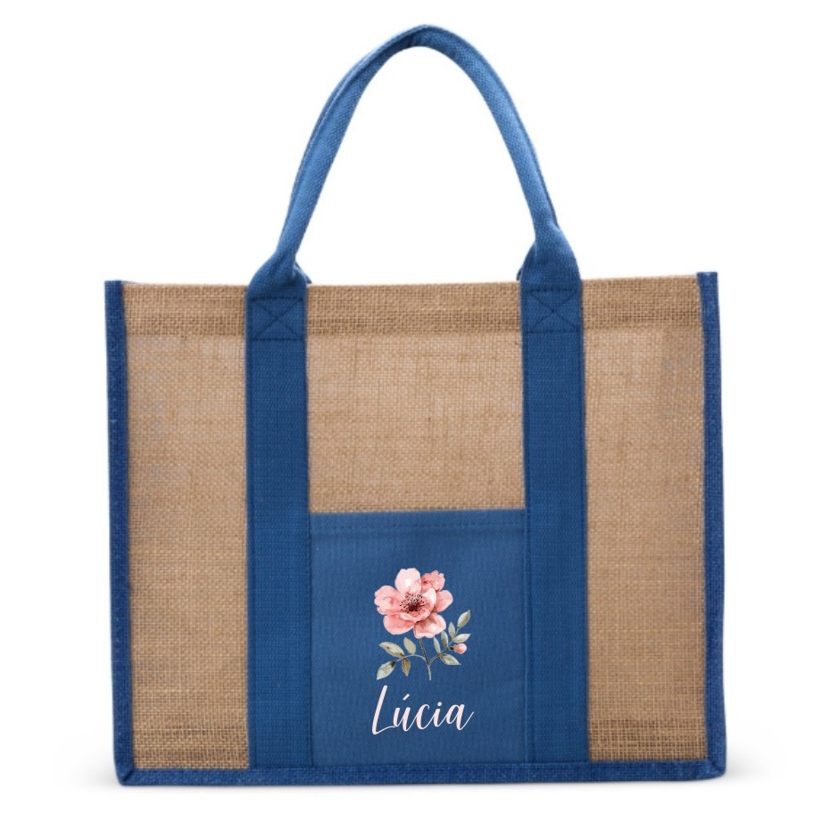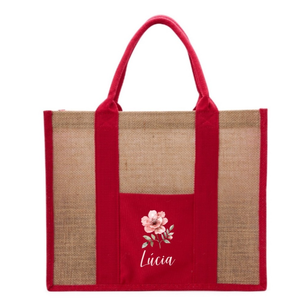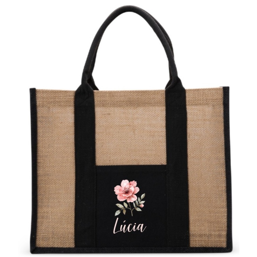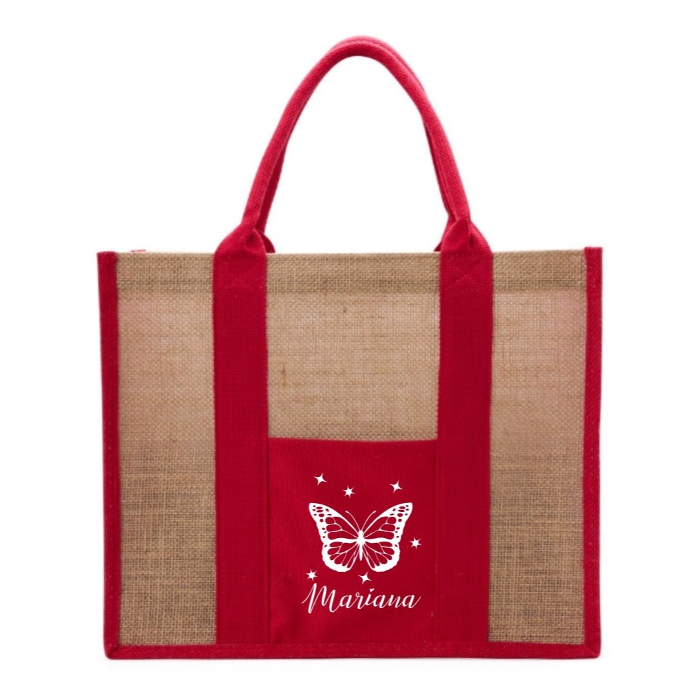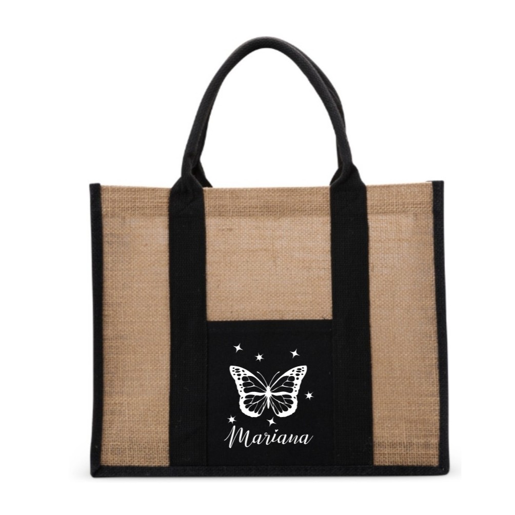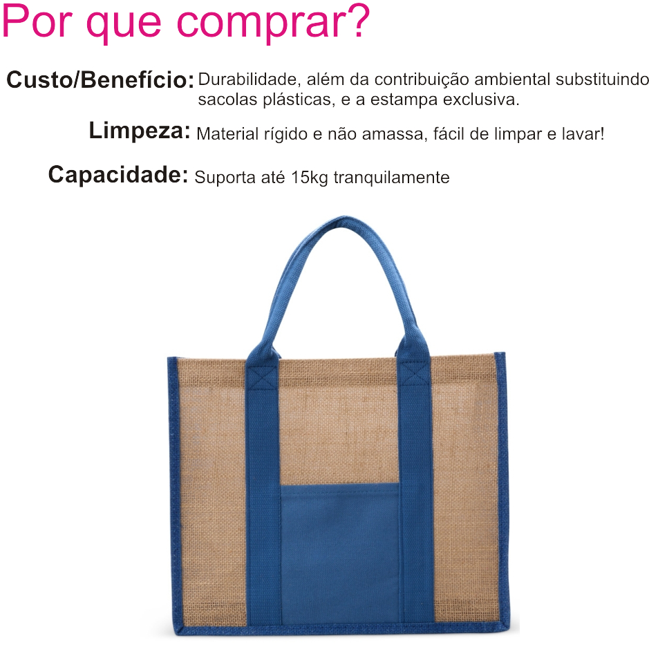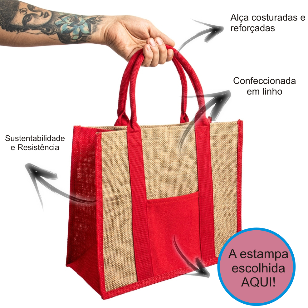Sacola Ecológica de juta com bolso de Linho Personalizada com Nome Sustentável e Resistente Várias Estampas