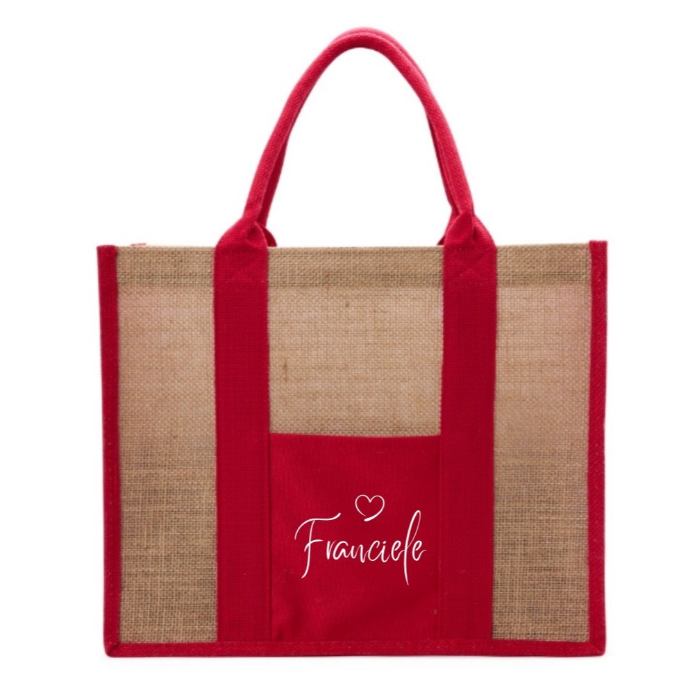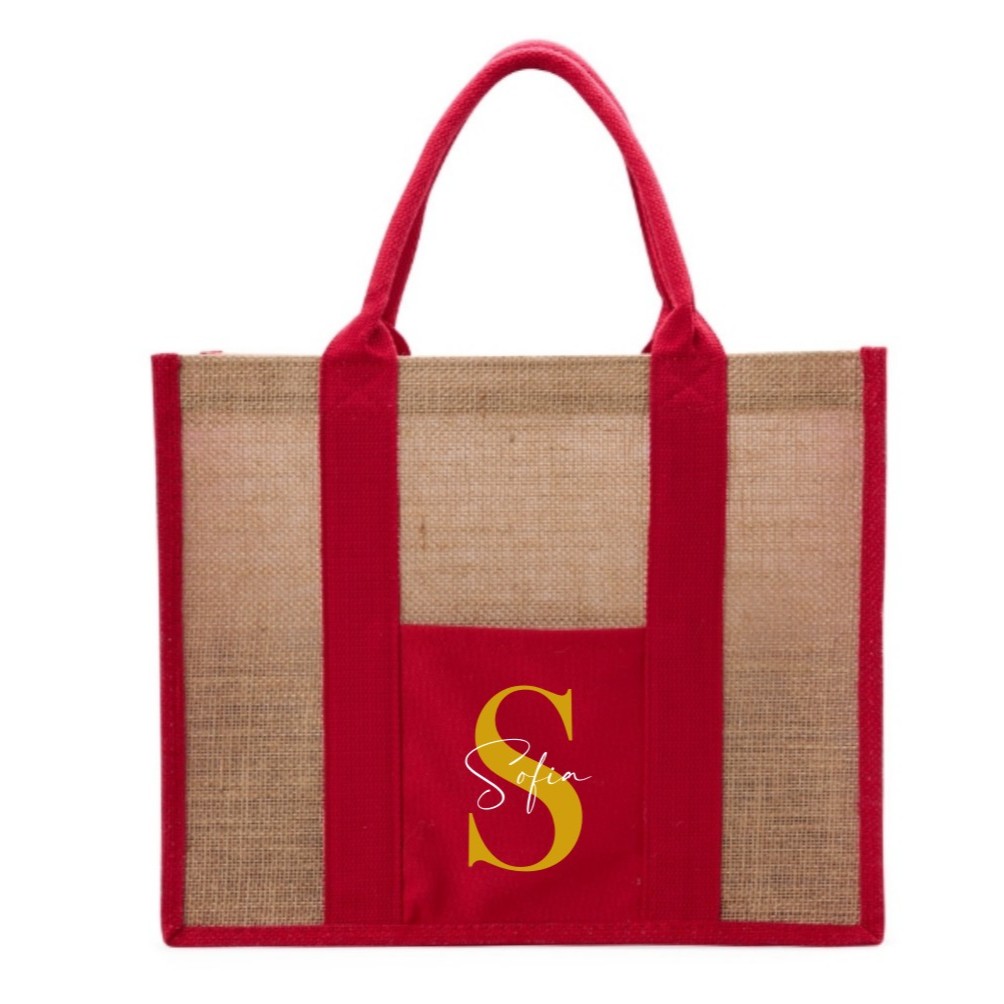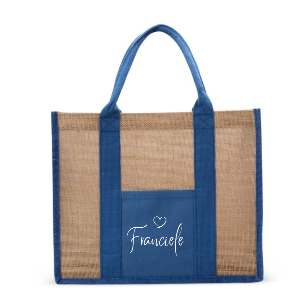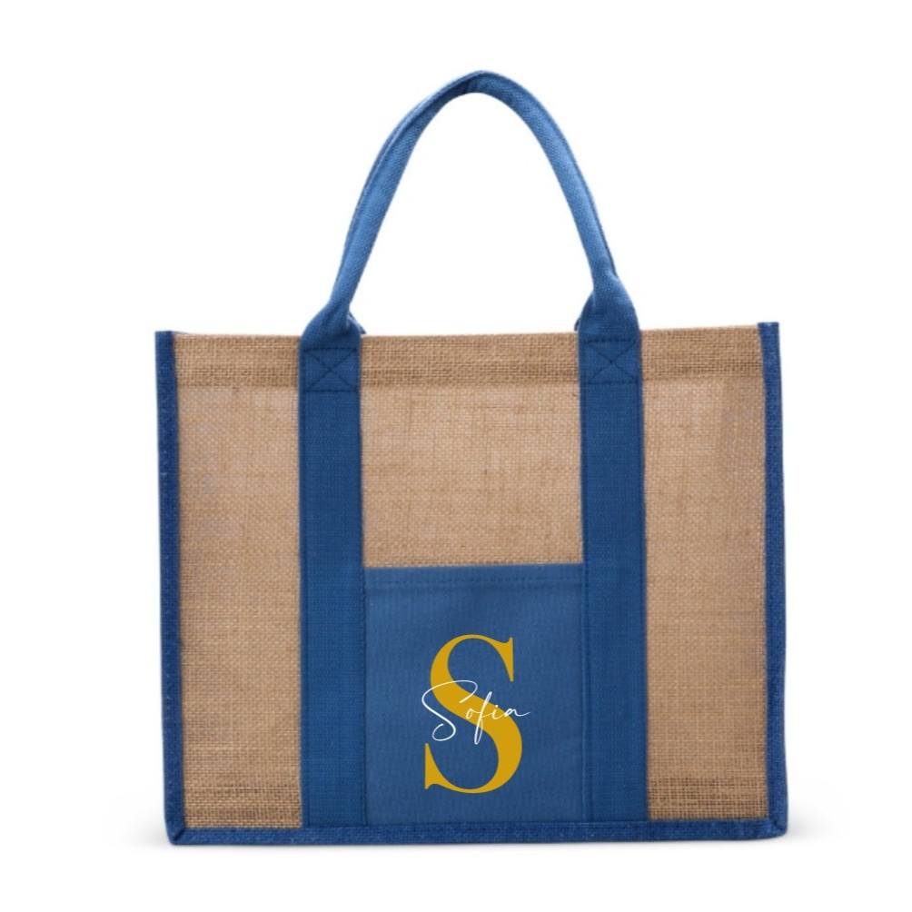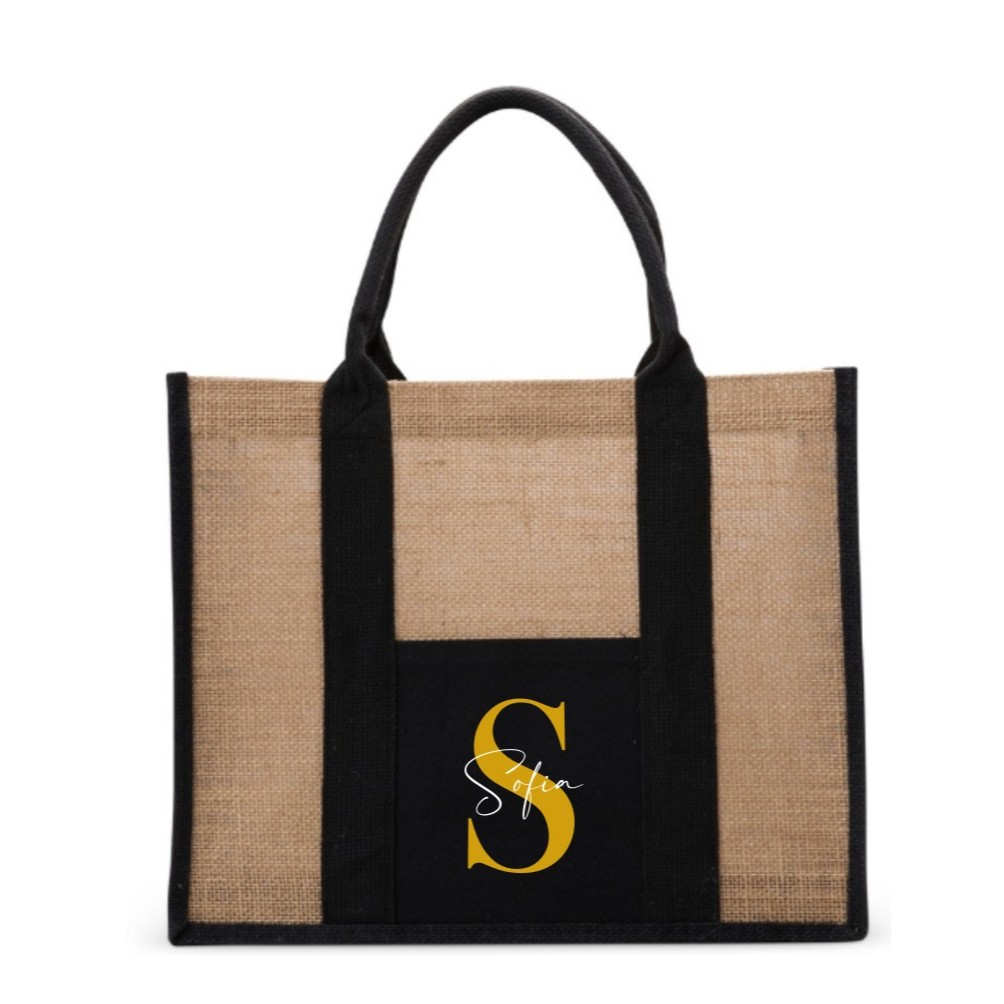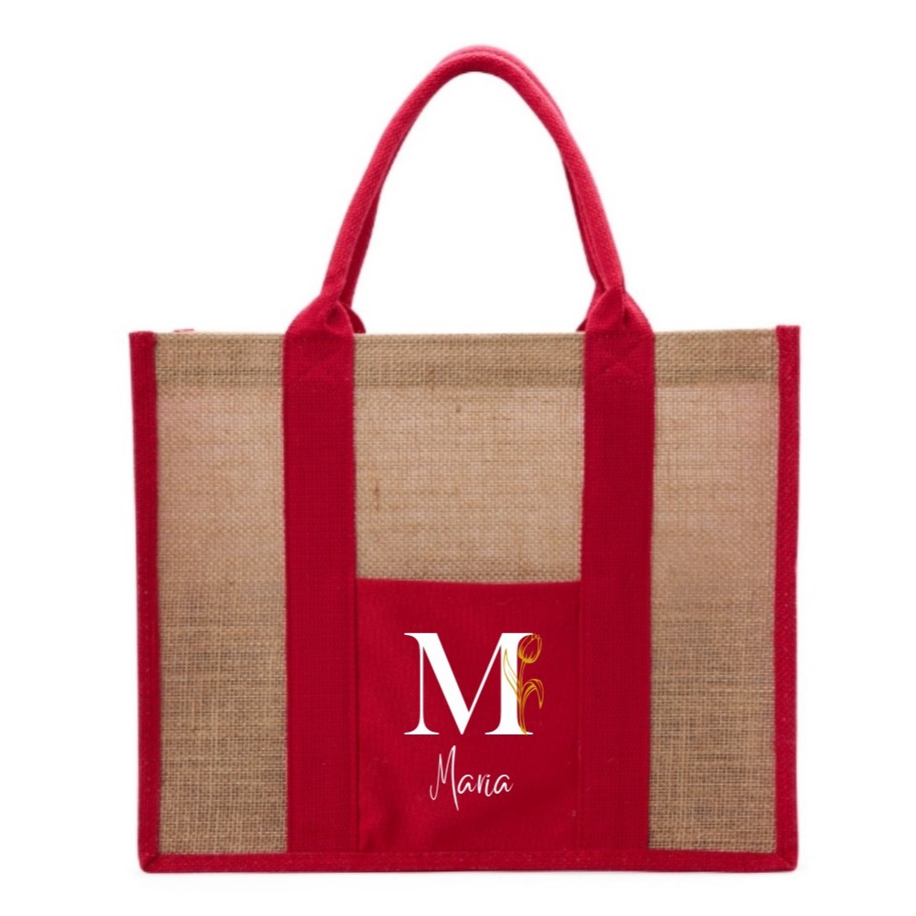 Sacola Ecológica de juta com bolso de Linho Personalizada com Nome Sustentável e Resistente Várias Estampas