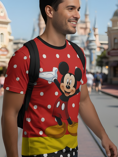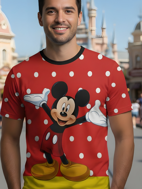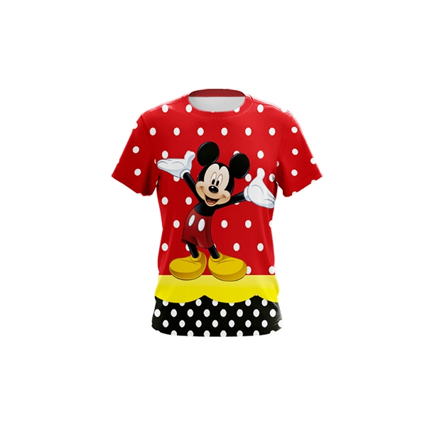 Camisa Adulta ou Infantil Mickey Vermelho Poá
