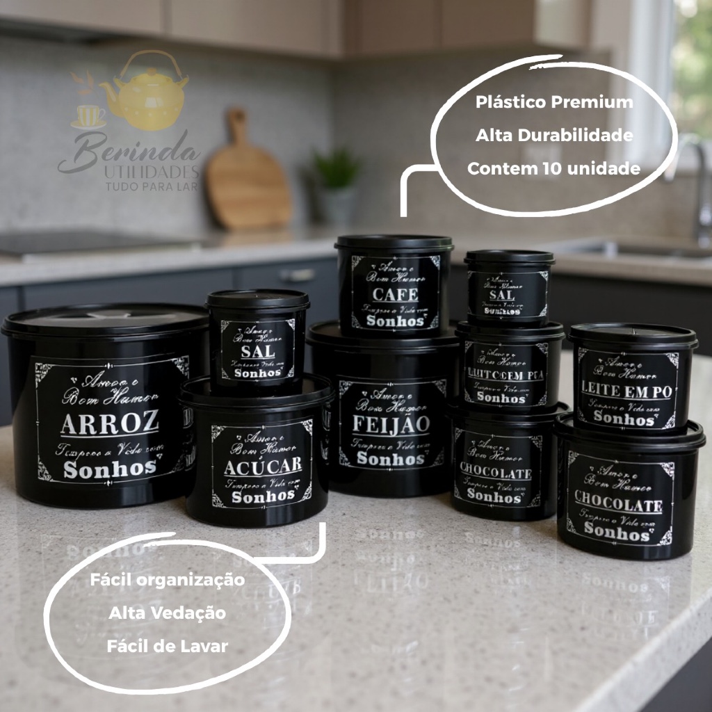 Kit Potes Mantimentos Linha premium Cozinha jogo com 10 Peças plástico Praticidade