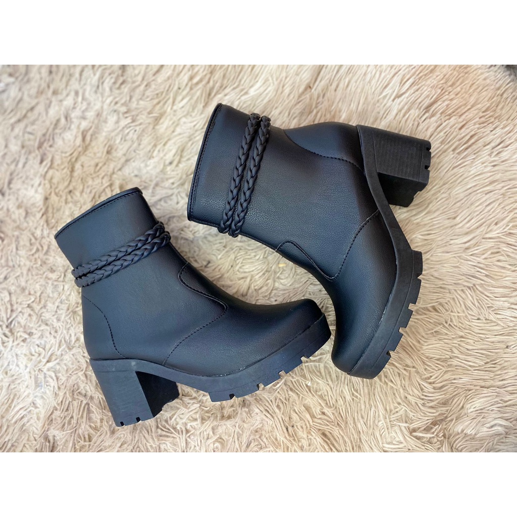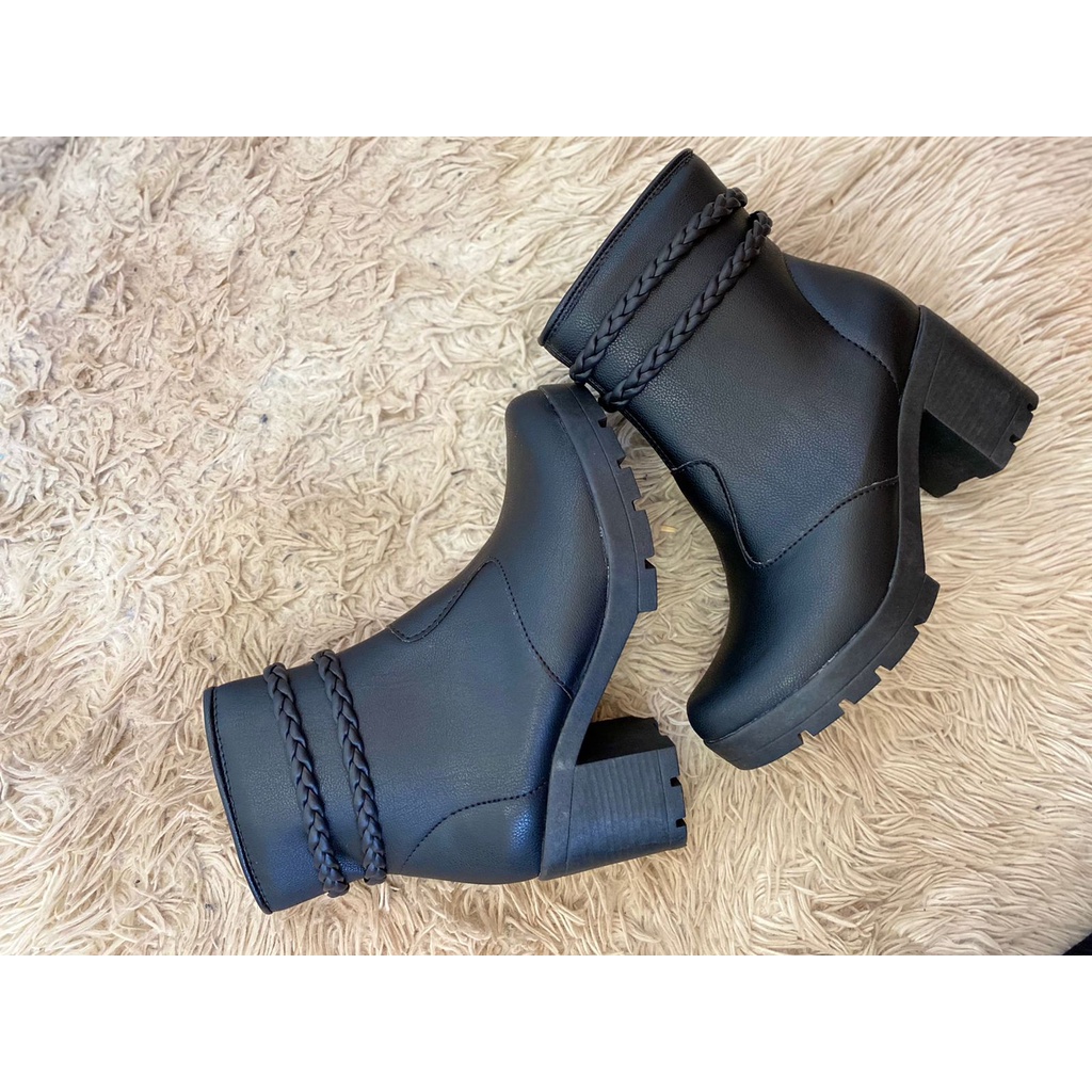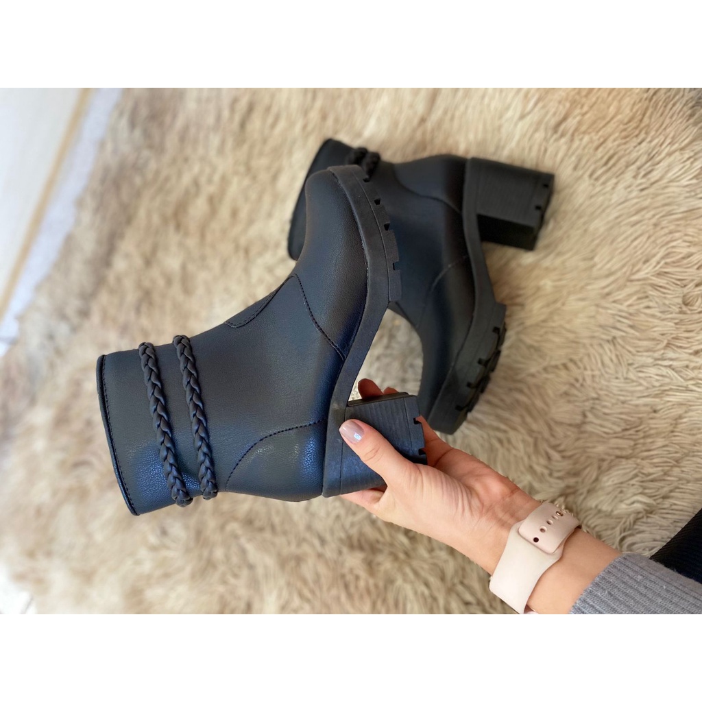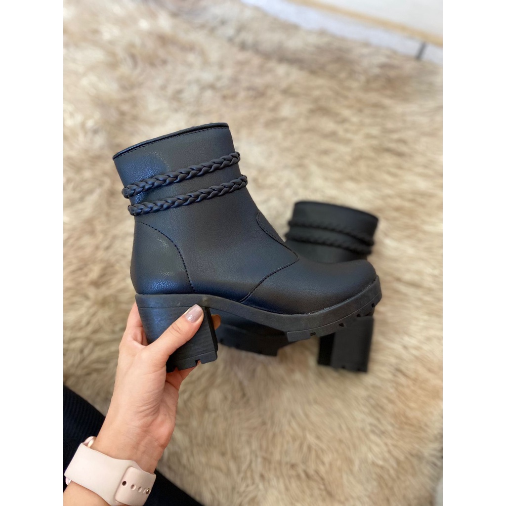 Coturno Tratorado Trançinhas Salto Médio Preto