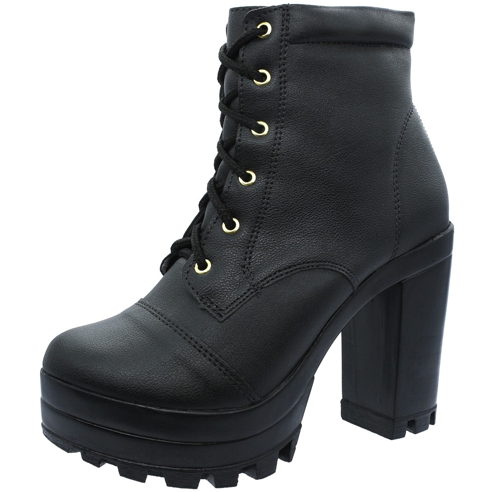 Coturno Feminino Tratorado Salto Alto Napa Preto