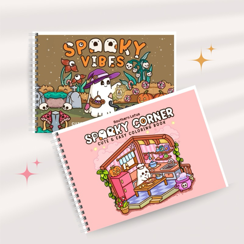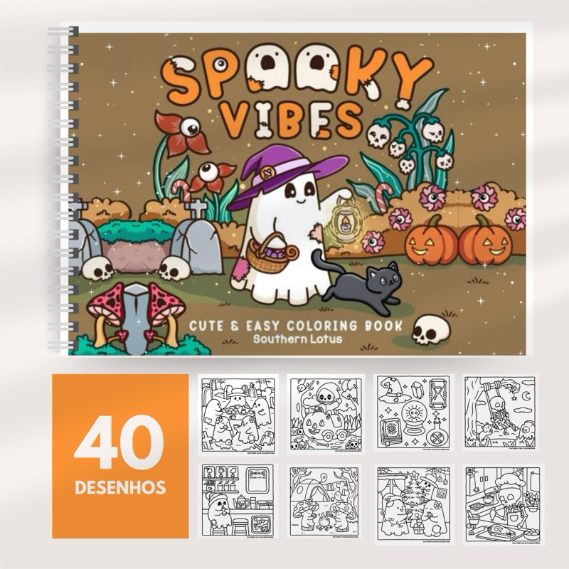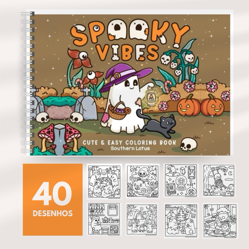 Livro de Colorir Impresso Spooky Vibes e Spooky Corner | 40 desenhos | Desenho | Pintura | Hobbie