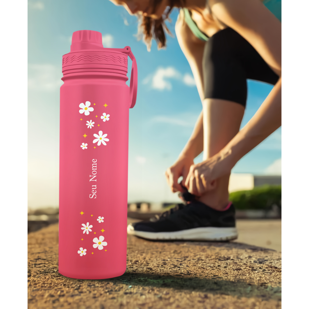 Garrafa Térmica Fresh Com Alça Personalizada Girassol Com Nome
