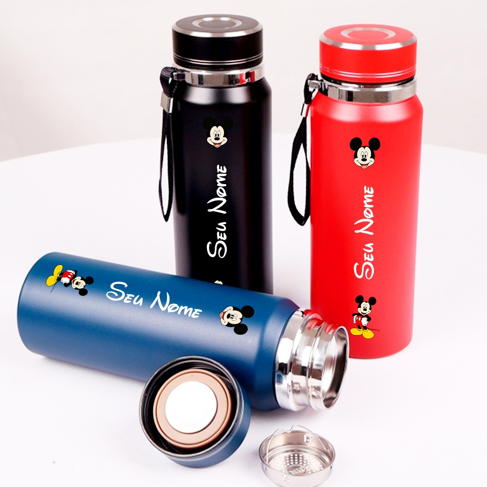 Garrafa Térmica de Aço Inox 800ml VACUUM CUP Personalizada do Mickey com Nome [G-118]
