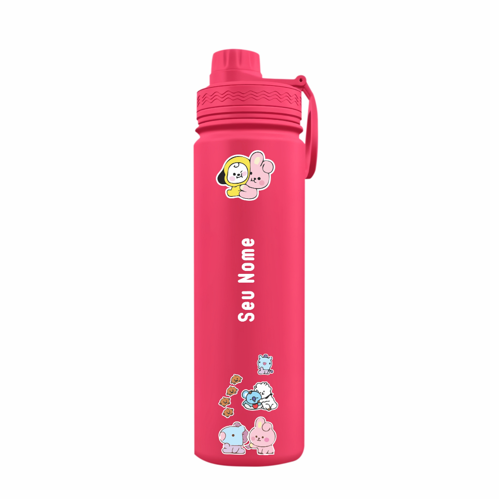 Garrafa Térmica com Alça Personalizada com Nome Presente Kpop Fã BTS - Chimmy and Cooky Hug