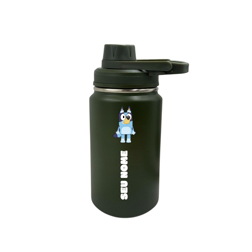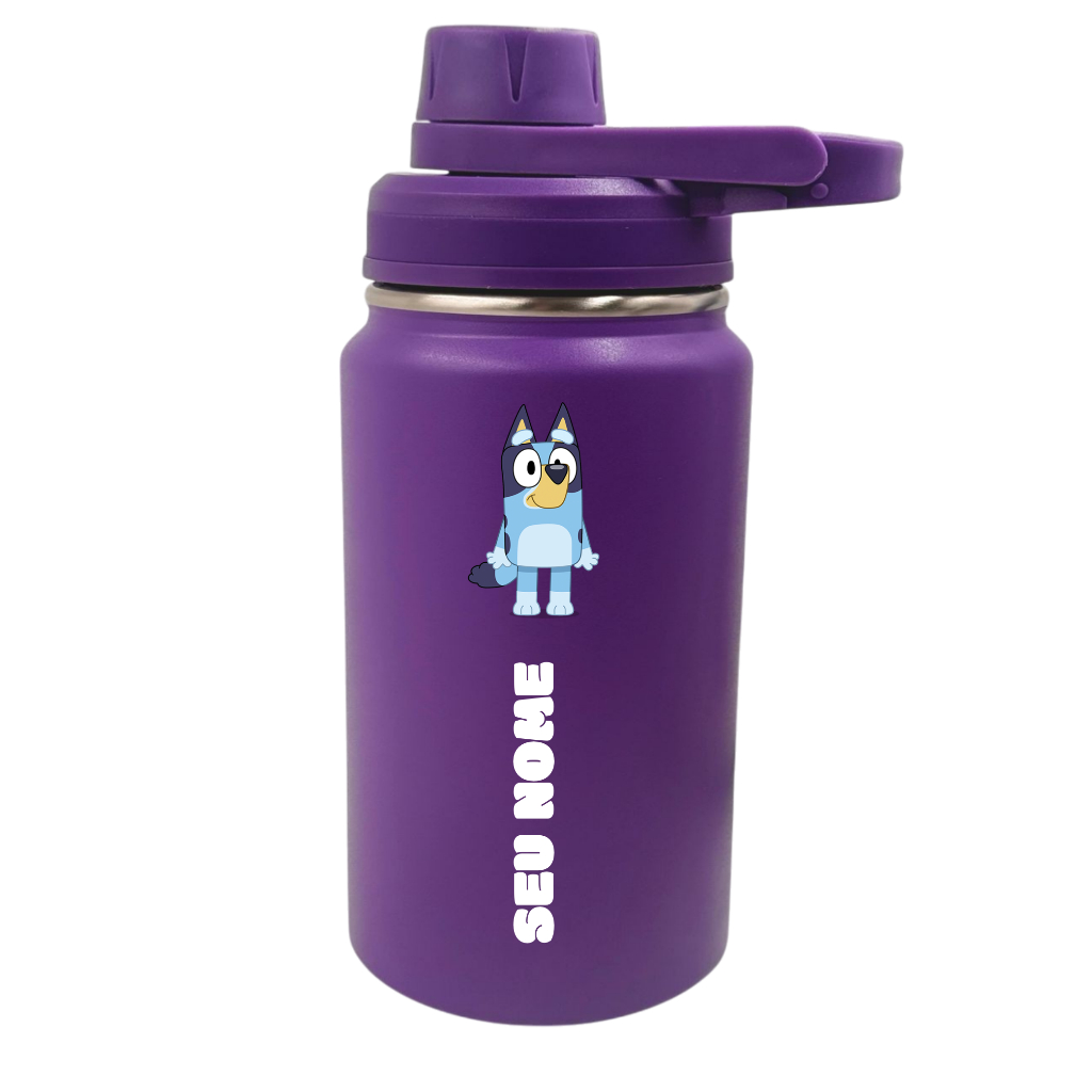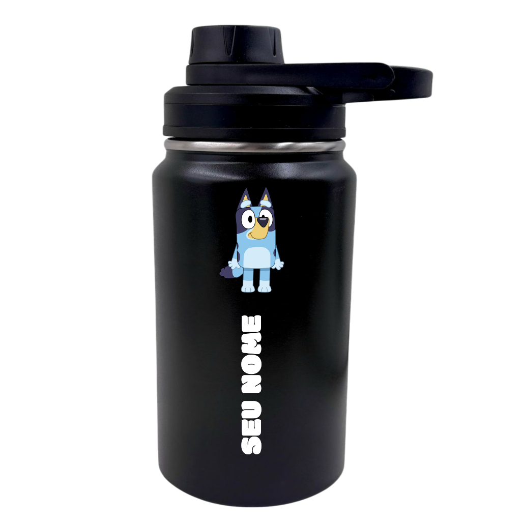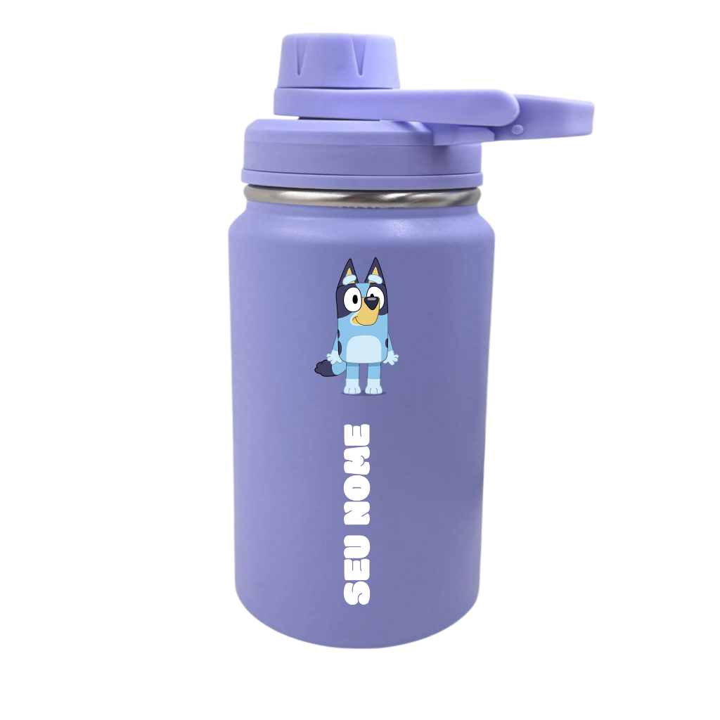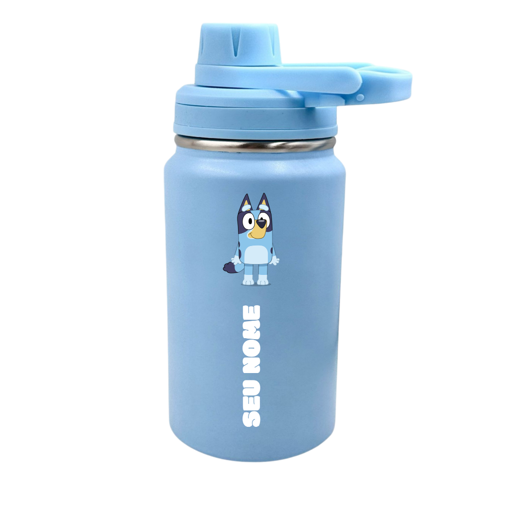 Garrafa Térmica Fresh Com Alça Personalizada Infantil com Seu Nome 350ml 550ml 600ml - Bluey Heeler