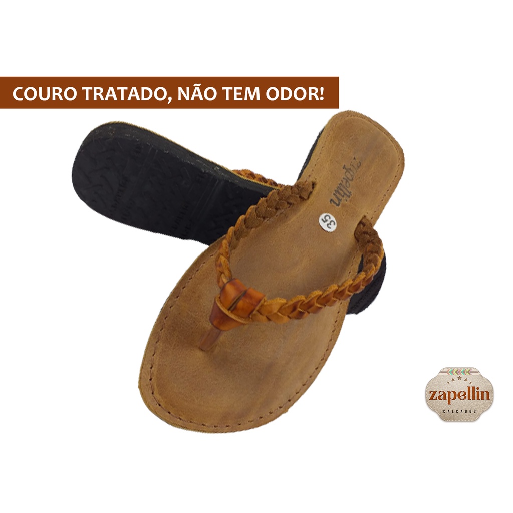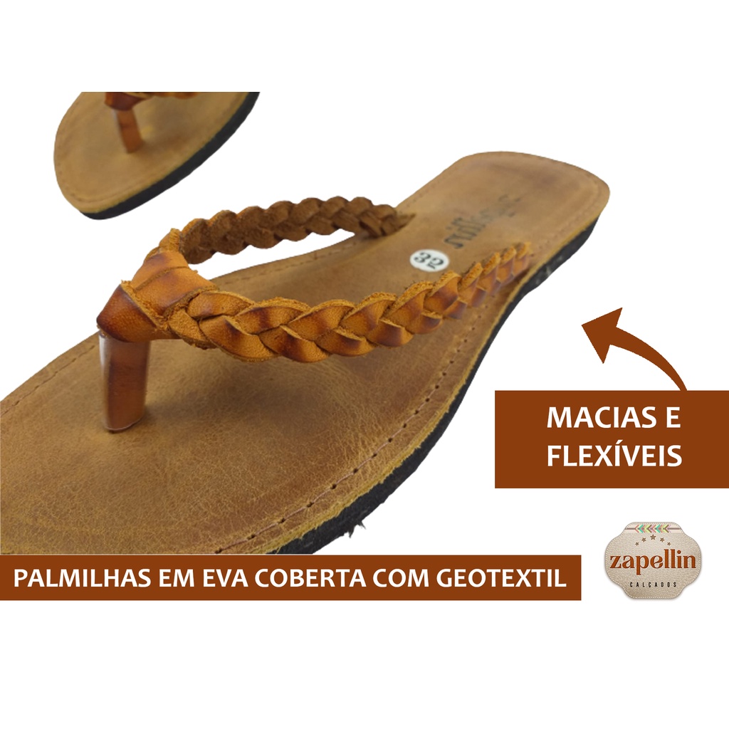 Chinelo Feminino Cabedal e Palmilha Couro Legítimo Antialergênico Solado Antiderrapante REF 41