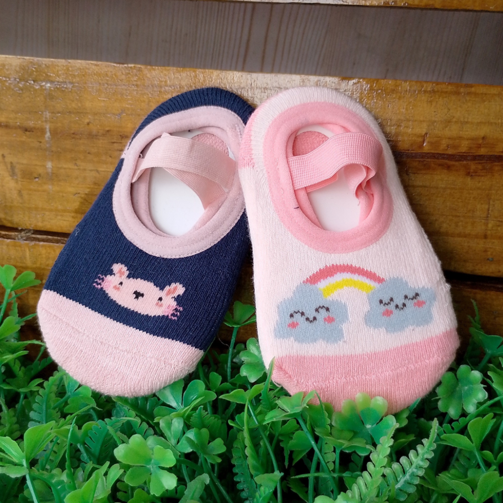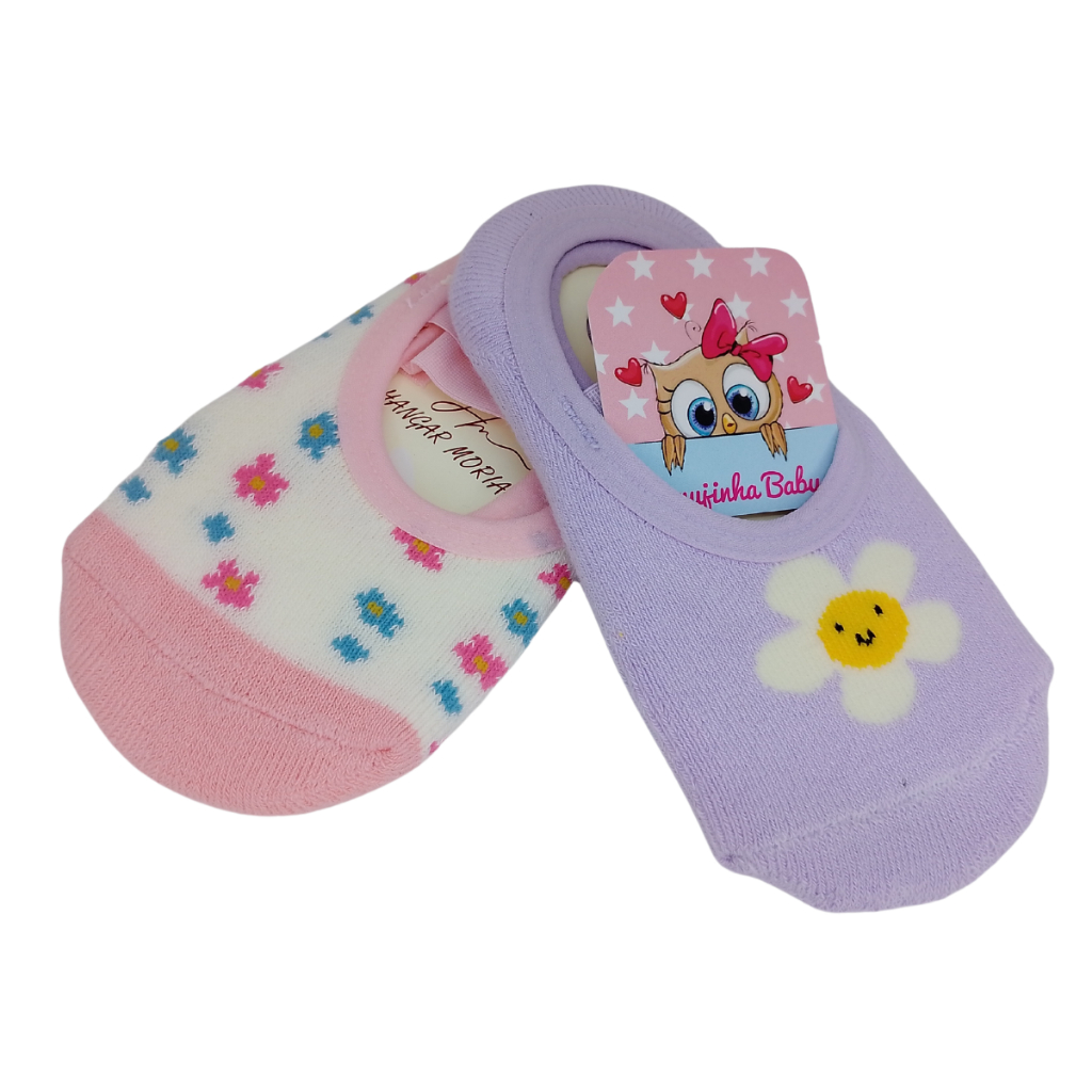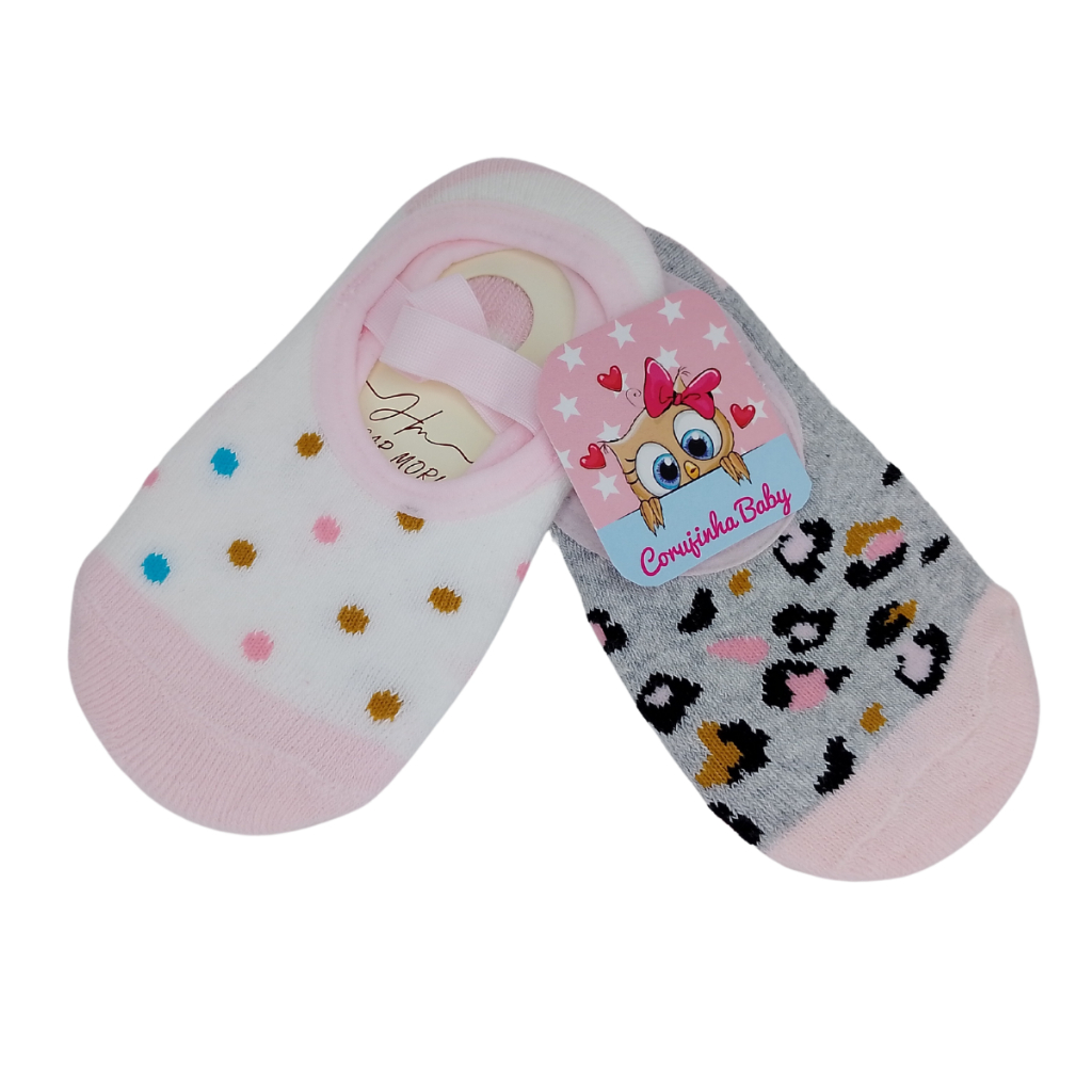 Kit 2 Pares Meias Sapatilhas Infantil Bebê Antiderrapante e Elástico
